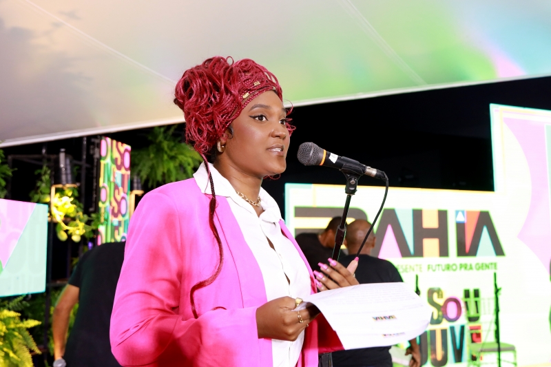 A coordenadora da Juventude da SEC, Larissa Lima, falou sobre consolidação das políticas públicas para a juventude no Estado da Bahia. "Minha fala é de gratidão ao governador Jerônimo e à secretária Rowenna por acreditarem na juventude baiana ao promover programas e projetos estruturantes que beneficiam a juventude e a coloca num lugar de protagonismo. Temos vivido hoje, na Educação, não só a execução de ações que possibilitam, por exemplo, o acesso e a permanência do jovem na universidade, mas também transformação de vidas, graças à sensibilidade do Governo da Bahia".
