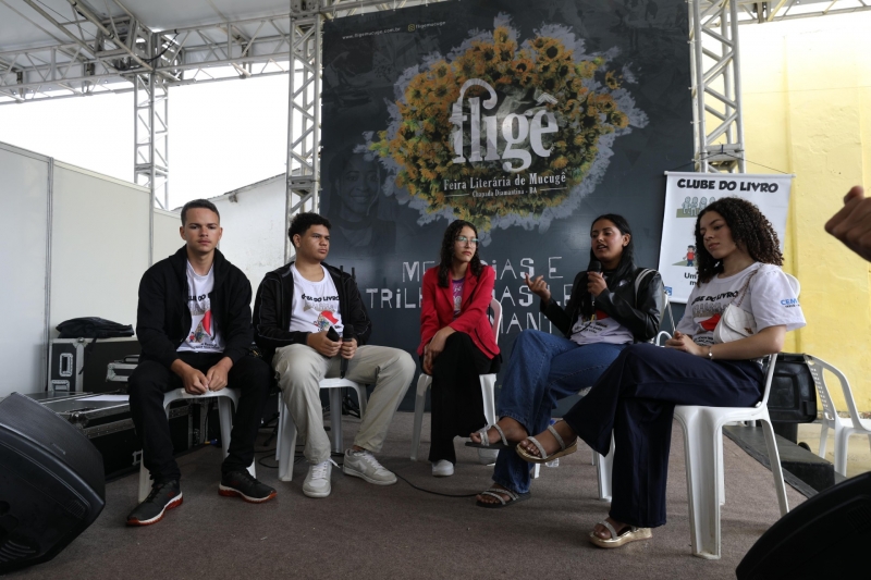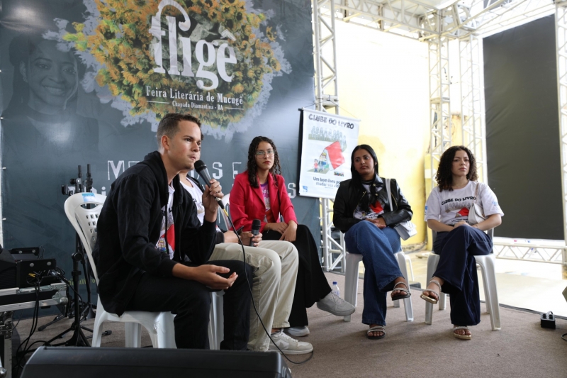 O dia começou com uma mesa de conversa formada por alunos do Clube de Leitura do Centro Regional de Ensino Médio com Intermediação Tecnológica de Irecê (Cemit). Os estudantes, reunidos no palco da tenda literária, compartilharam suas experiências e reflexões sobre a leitura de clássicos da Literatura Brasileira.