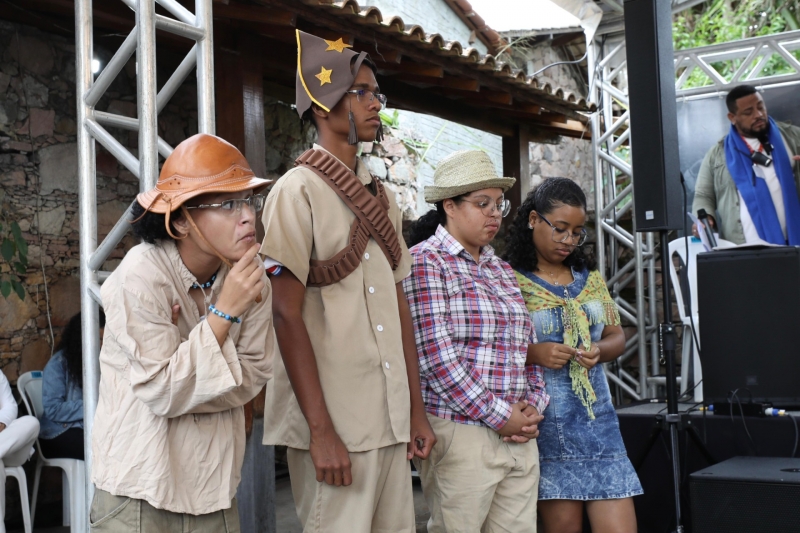 A participação dos estudantes e professores da rede estadual marcou mais um dia da Feira Literária de Mucugê (Fligê). Nesta sexta-feira (26), a programação - recheada de apresentações, debates e palestras - reuniu autores, leitores e entusiastas da literatura, proporcionando uma rica troca de experiências e conhecimento. Representando a secretária da Educação do Estado, Rowenna Brito, o assessor especial da pasta, Manoel Calazans, acompanhou as atividades, ao longo do dia.