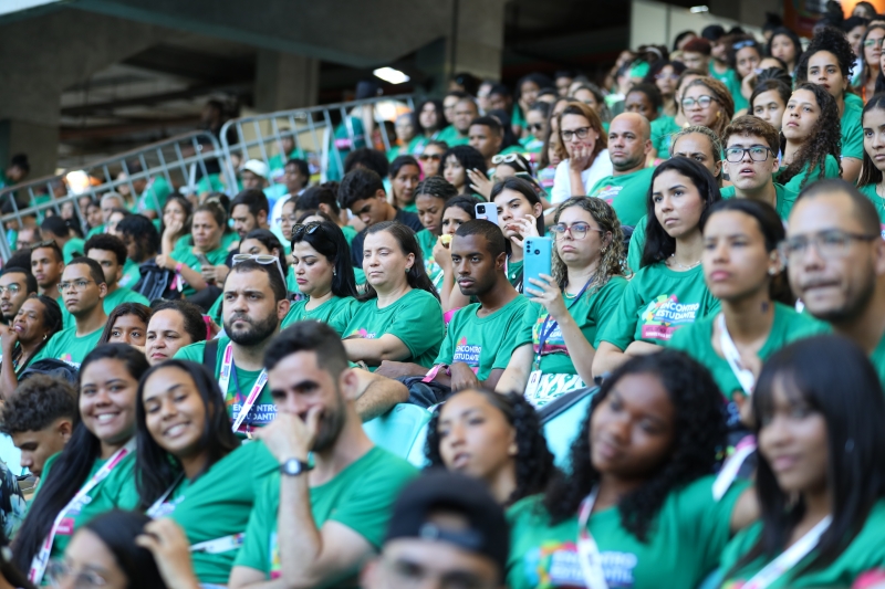 Mais de sete mil pessoas, dos quatro cantos da Bahia, se reuniram na Arena Fonte Nova, em Salvador, para prestigiar o encerramento do Encontro Estudantil da Rede Estadual de Educação, na tarde desta quinta-feira (dia 19), com a final do Festival Conecta Voz, seguida da apresentação da cantora Mari Fernandez. O evento é promovido pela Secretaria da Educação do Estado (SEC) e destaca as produções literárias, artísticas e projetos de iniciação científica e tecnológicos desenvolvidos por estudantes e professores das escolas estaduais ao longo do ano letivo.