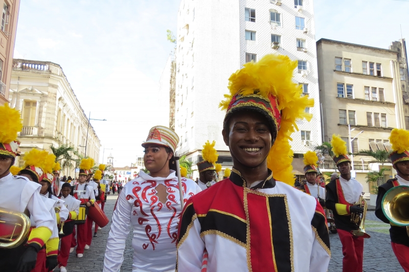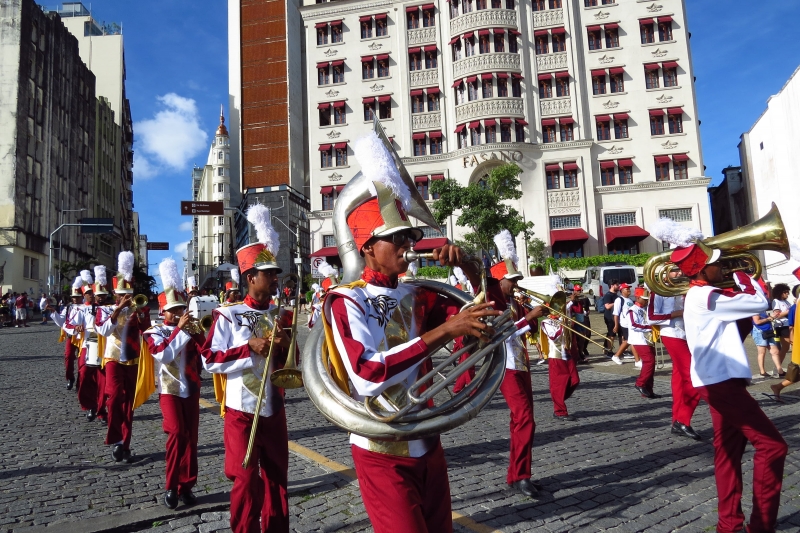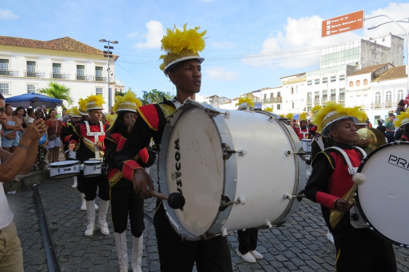 As fanfarras das escolas da rede estadual levaram animação, cores e diferentes sons entoados por instrumentos de sopro e percussão para as ruas do Centro Histórico de Salvador, durante o Desfile Cívico do 2 de Julho. A data celebra os 201 anos da Independência da Bahia, consolidada quando os portugueses foram expulsos de Salvador, no dia 2 de julho de 1823. A Secretaria da Educação do Estado (SEC) – que incentiva a cultura musical e de aproximação entre a escola e a comunidade – tem nas fanfarras escolares um espaço de aprendizagens e de fomento à cultura de paz, bem como um lugar de socialização e inclusão.