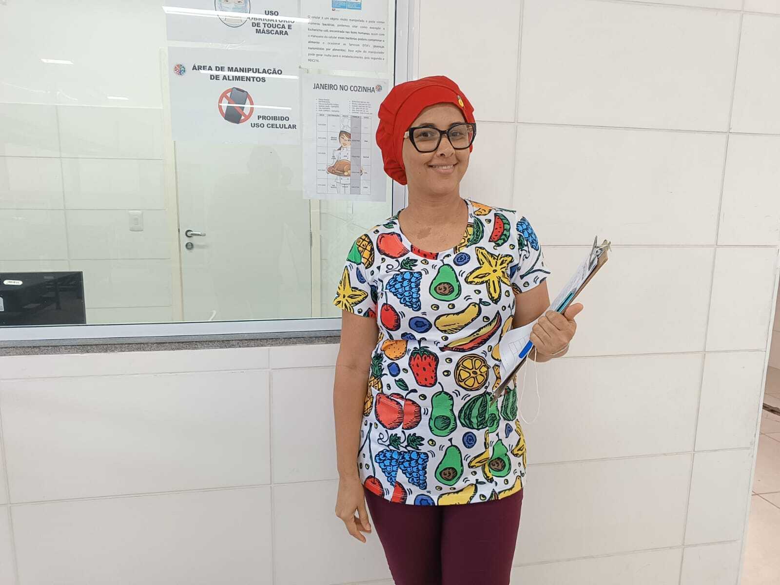 A técnica em Nutrição, Luciene Santos, que atua no mesmo colégio, falou da importância do trabalho com as cozinheiras. “Eu as auxilio no preparo das refeições e todo o cardápio elaborado se baseia nos critérios do Pnae. Além disso, verificamos a temperatura e coletamos amostras dos alimentos e fazemos todo o controle de higiene, tanto dos alimentos quanto do ambiente da cozinha”.