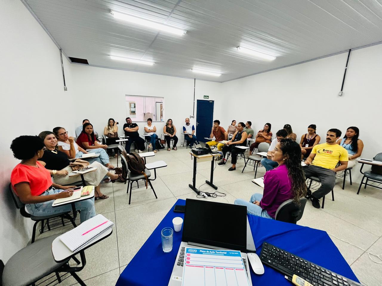 Durante as oficinas, os NTEs apresentam aos gestores escolares os Planos de Ação Territoriais e oferecem apoio para a construção dos Planos Escolares. No Território de Identidade de Irecê (NTE 1), a oficina aconteceu no município de Irecê, no Teatro Ataídes Ribeiro. Já no Território Bacia do Rio Corrente (NTE 23), a atividade foi realizada em Santa Maria da Vitória, no Polo da Universidade Aberta do Brasil (UAB).