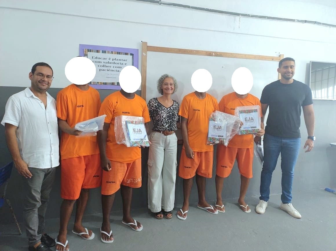 O Núcleo Territorial de Educação do Baixo Sul (NTE 6) realizou, esta semana, a entrega do kit-escolar para a turma da Educação de Jovens e Adultos (EJA) do Conjunto Penal de Valença. Durante a distribuição de caderno, classificador, caneta, lápis, borracha e lapiseira para os estudantes em privação de liberdade, a equipe do NTE 6 visitou as dependências da unidade e promoveu um diálogo com eles sobre a EJA e suas diretrizes como um processo de ensino de emancipação, que respeita trajetórias, resgata sonhos e promove a inclusão. Modalidade da Educação Básica, a EJA tem como prerrogativa promover um atendimento educacional de qualidade, socialmente referenciada, para jovens, adultos e idosos que ainda não consolidaram suas aprendizagens nos ensinos Fundamental e Médio.
