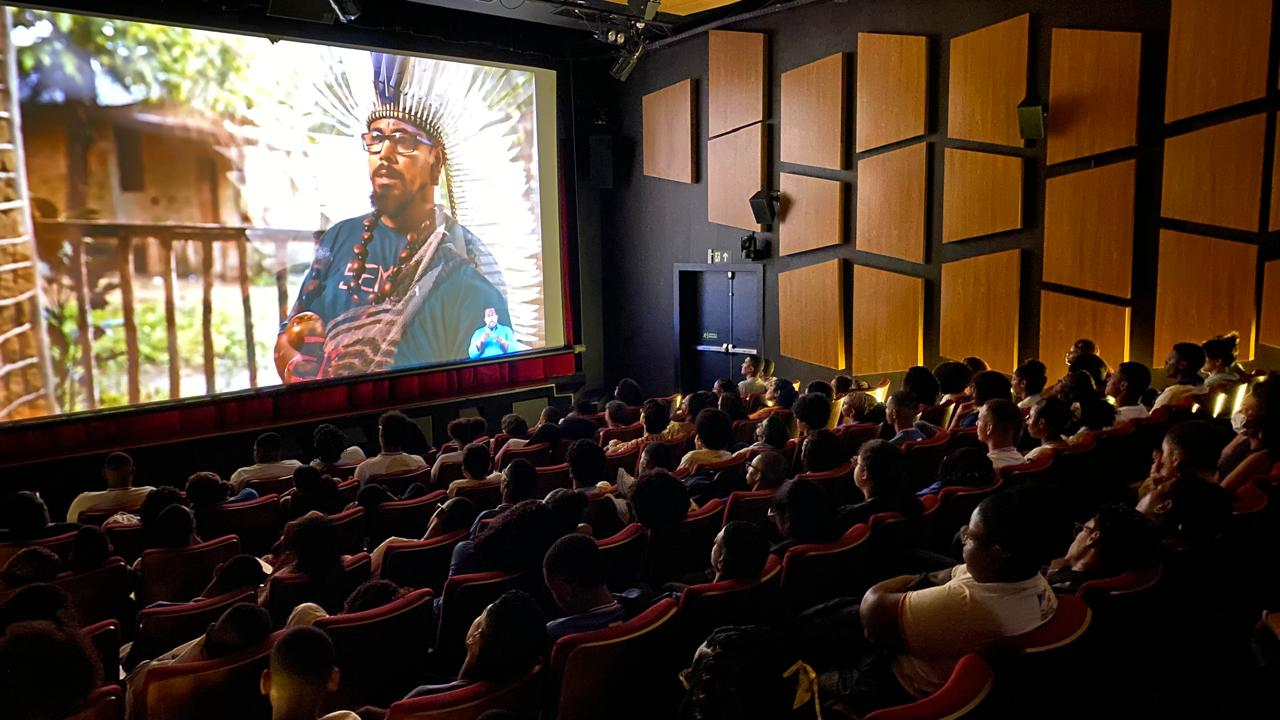 Mais de 100 estudantes do colégios estaduais Mário Costa Neto e Henriqueta Martins Catharino, localizados em Salvador, assistiram, nesta quinta-feira (20), no Cineteatro 2 de Julho, no Instituto de Radiodifusão Educativa da Bahia (Irdeb), ao média-metragem “Yby Yara – Terra do Conhecimento”, que retrata a rotina de educadores no território étnico-educacional Yby Yara, na Bahia. A ação faz parte do projeto Sessão Estudantil, que visa proporcionar aos estudantes o acesso a produções audiovisuais baianas que se conectam aos conteúdos pedagógicos e às realidades socioculturais da Bahia.