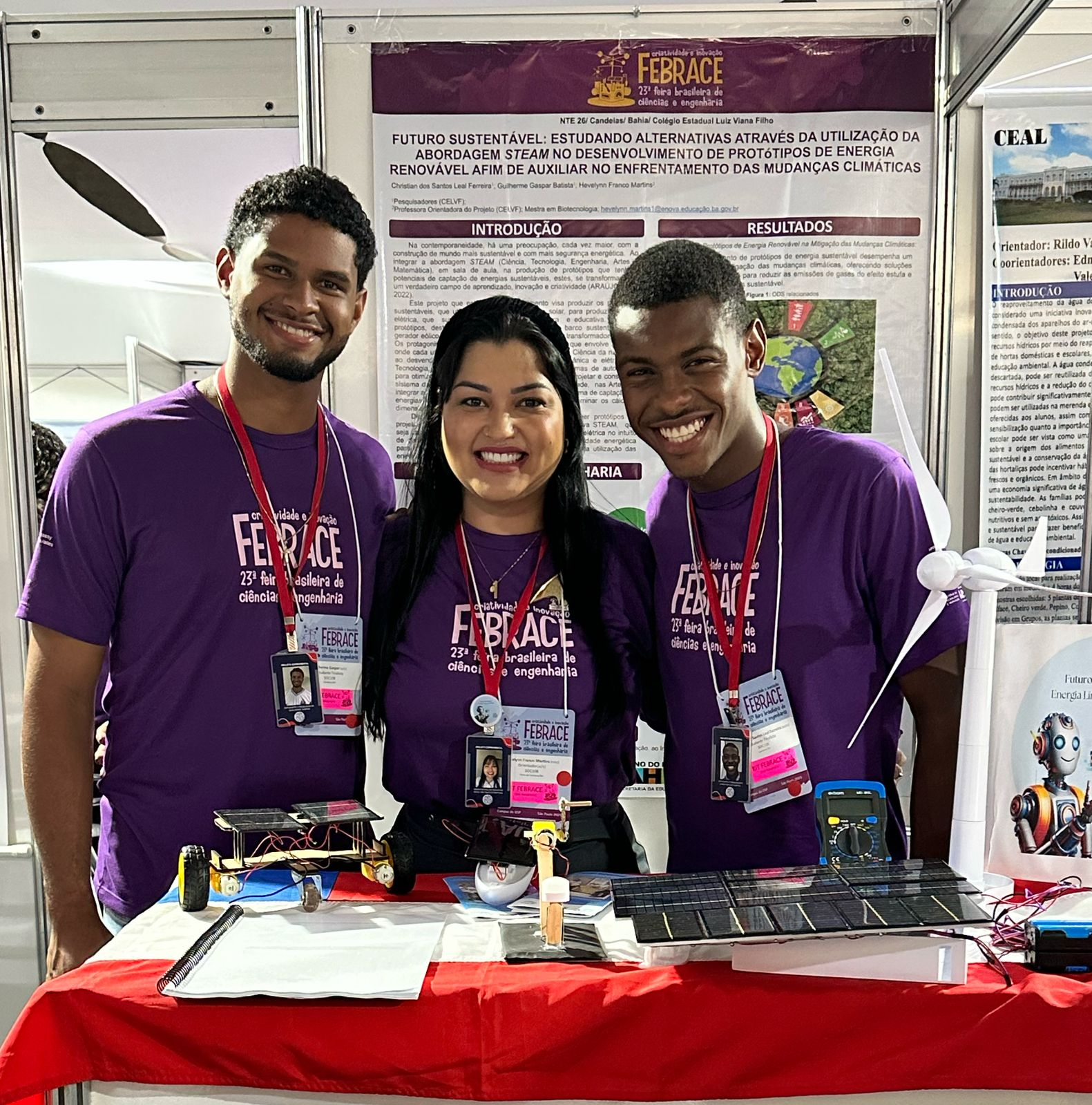 A professora destaca ainda que o Governo da Bahia tem desempenhado um papel crucial ao investir recursos focados no incentivo do desenvolvimento de projetos de iniciação científica, bem como na melhoria das práticas de ensino, aprimorando a qualidade da educação no estado. O estudante Guilherme Gaspar lembra que, na Bahia, já existem 156 escolas construídas com energia renovável: “O projeto que estamos apresentando aqui na Febrace tem relação direta, pois desenvolvemos protótipos com energia renovável afim de auxiliar no enfrentamento das mudanças climáticas, buscando um futuro mais sustentável. Gostaríamos muito que essa tecnologia também alcance a nossa escola”, afirma o estudante.