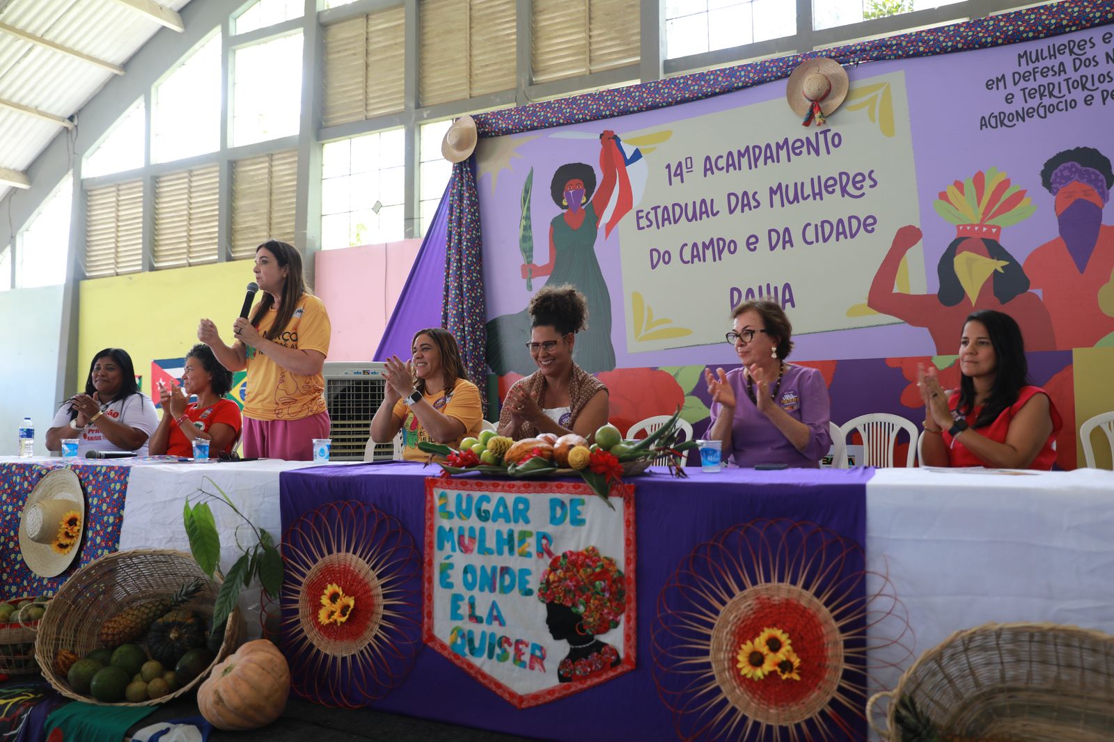 Organizado pelo Instituto Baiano Osmar Azevedo (IBOA), com apoio da Secretaria da Educação do Estado (SEC), o 14º Acampamento Estadual de Mulheres do Campo e da Cidade promove um conjunto de atividades formativas relacionadas à componentes curriculares dos itinerários formativos da Educação do Campo e, também, de geração de renda, com a exposição de produtos alimentícios e artesanatos produzidos pelas mulheres.