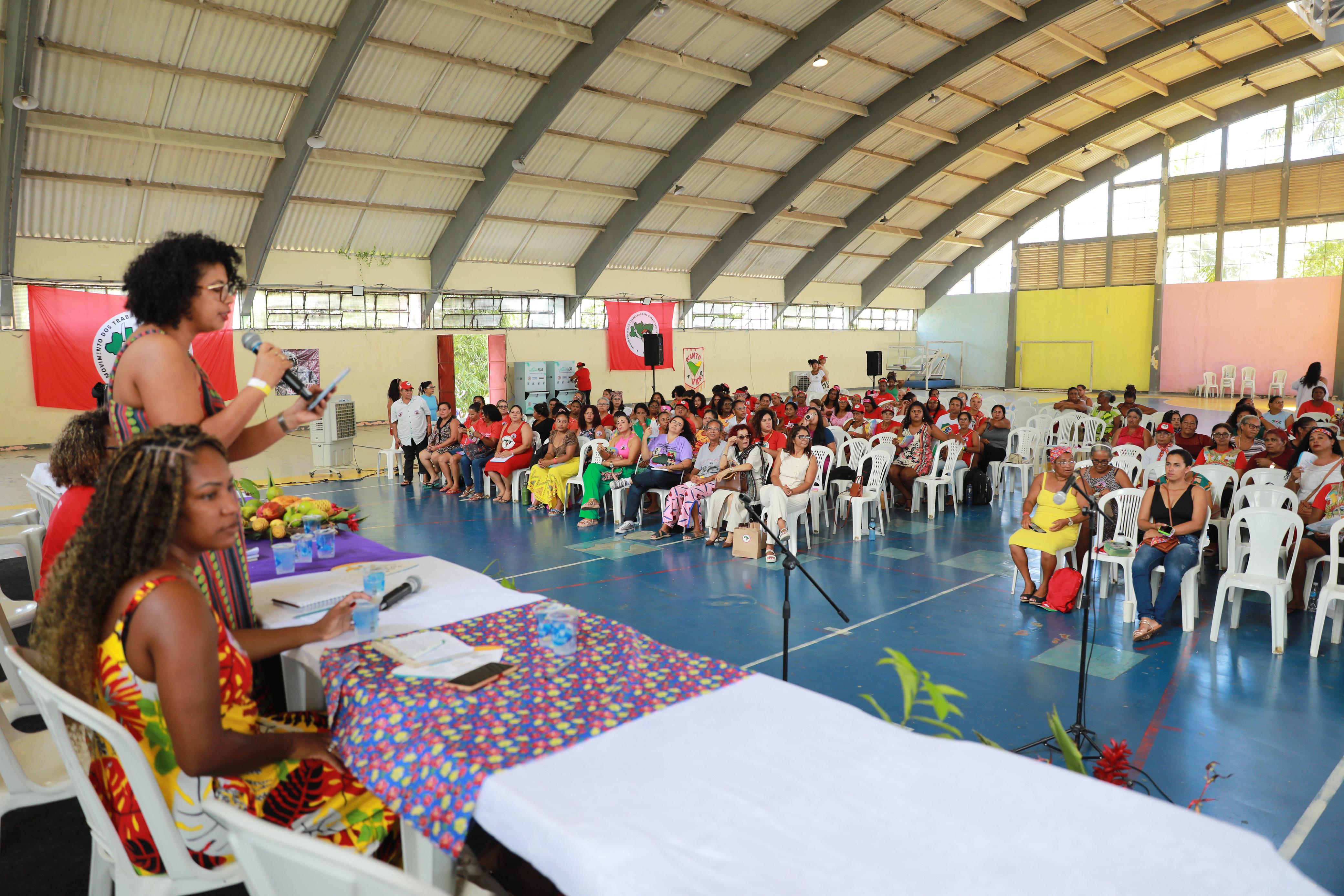 Programação - Este segundo dia do acampamento contou com uma mesa de discussão sobre as seguintes temáticas: “A importância e os desafios da participação das mulheres nos movimentos sociais e nas comunidades vulnerabilizadas”; “variações Climáticas – Os impactos do agro-hidro-minério-negócio”; “Marcha Nacional das Mulheres Negras”; e “Relações emancipadas e territórios livres de violências”.
