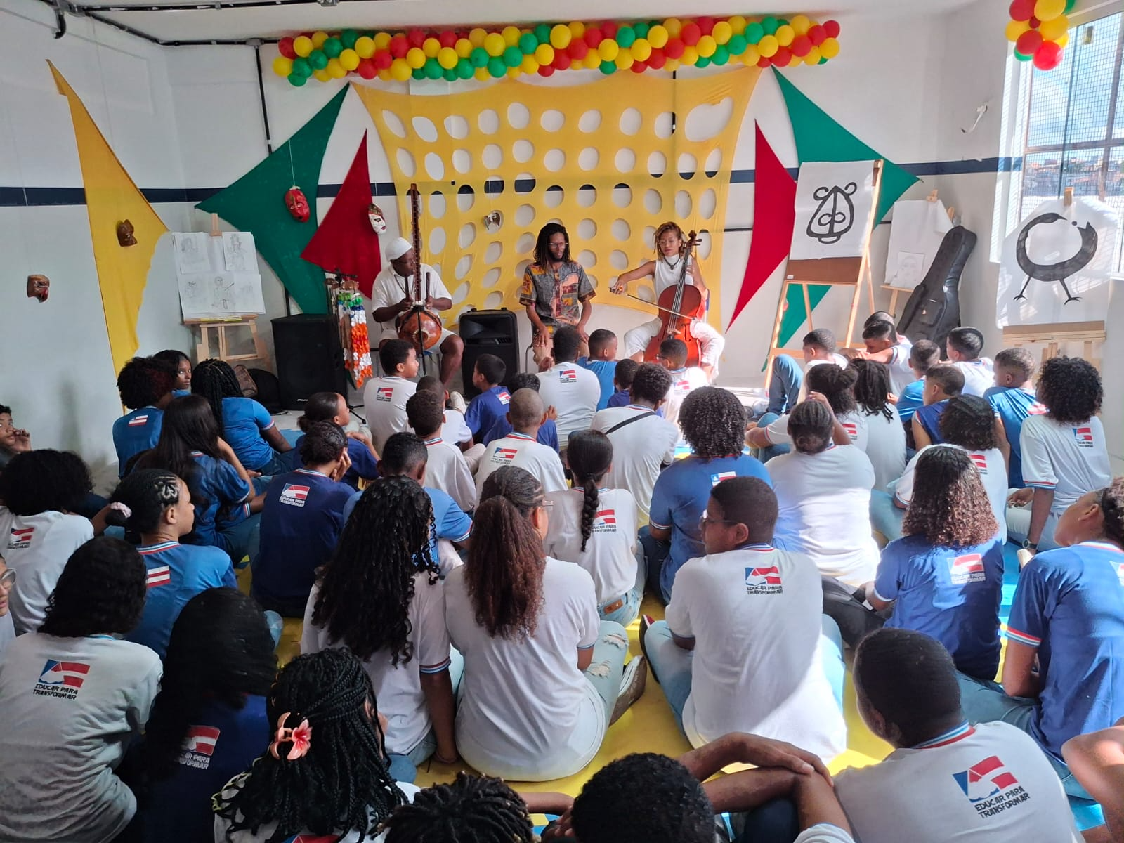 O contador de história da Literatura Oral Bantu, Mário Sankofa, realizou, nesta segunda-feira (31), uma atividade de contação de história com a comunidade escolar do Colégio Estadual Clarice Santiago dos Santos, situado no bairro do Arenoso. A proposta da ação foi enriquecer o conhecimento dos estudantes, além de estimular o interesse pela cultura afro-brasileira. A unidade escolar, que foi batizada em homenagem à líder religiosa negra, se destaca pelo fato de estar localizada no maior quilombo urbano de Salvador, conhecido no passado como Quilombo do Beiru.