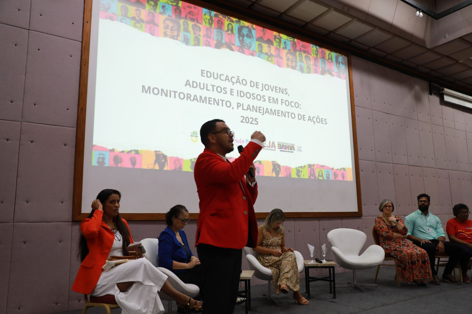 A Secretaria da Educação do Estado da Bahia (SEC) está promovendo, ao longo desta quinta-feira (3), em Salvador, o encontro "Educação de jovens, adultos e idosos em foco: monitoramento, planejamento e fortalecimento de ações - 2025", no Hotel Fiesta, em Salvador. O evento, que prossegue até sexta-feira (4), reúne cerca de 110 participantes com o objetivo de dialogar e fortalecer os projetos e programas implementados pela pasta para combater o analfabetismo.