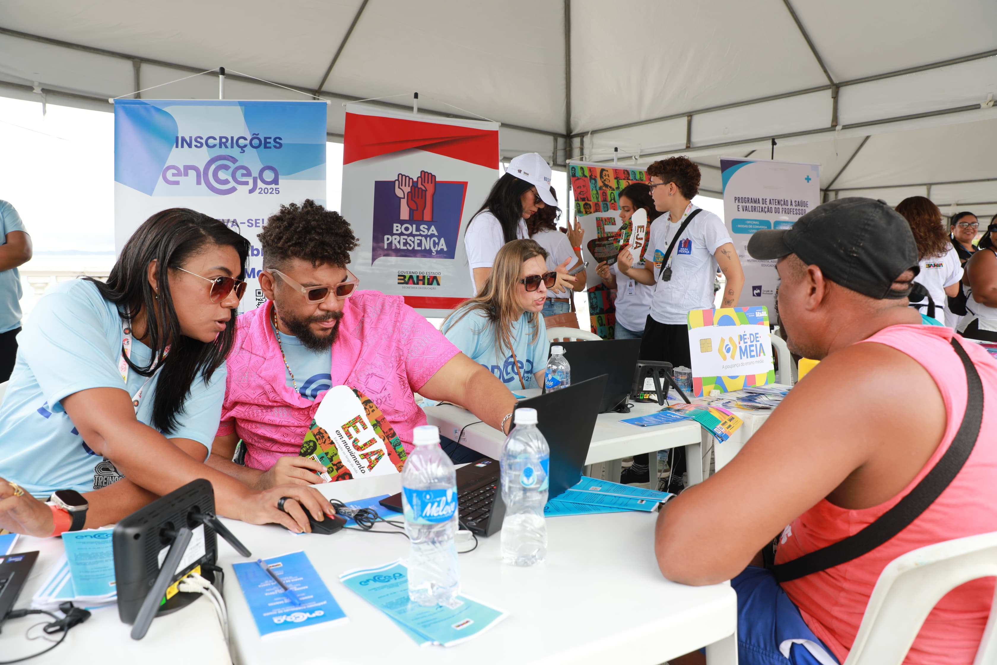 A Secretaria da Educação do Estado da Bahia (SEC) participa das comemorações do Dia do Trabalho com uma programação especial, em Salvador e Feira de Santana. No Farol da Barra, a SEC oferece serviços voltados à valorização dos trabalhadores e da educação, como a divulgação do Exame Nacional para Certificação de Competências de Jovens e Adultos (Encceja), com inscrições abertas até 2 de maio. A certificação gratuita permite a conclusão do Ensino Fundamental e Médio por jovens e adultos que não concluíram os estudos na idade regular.