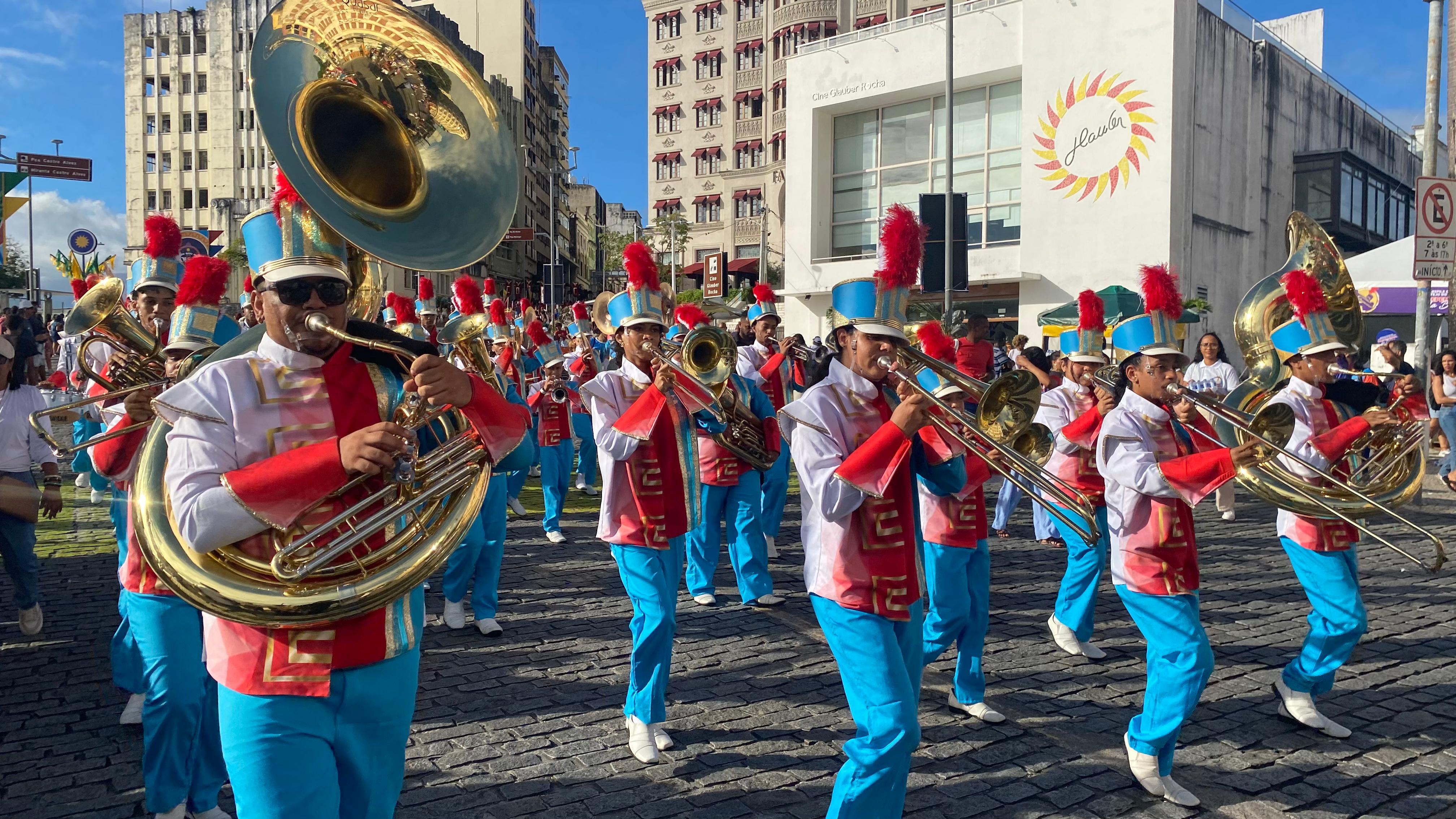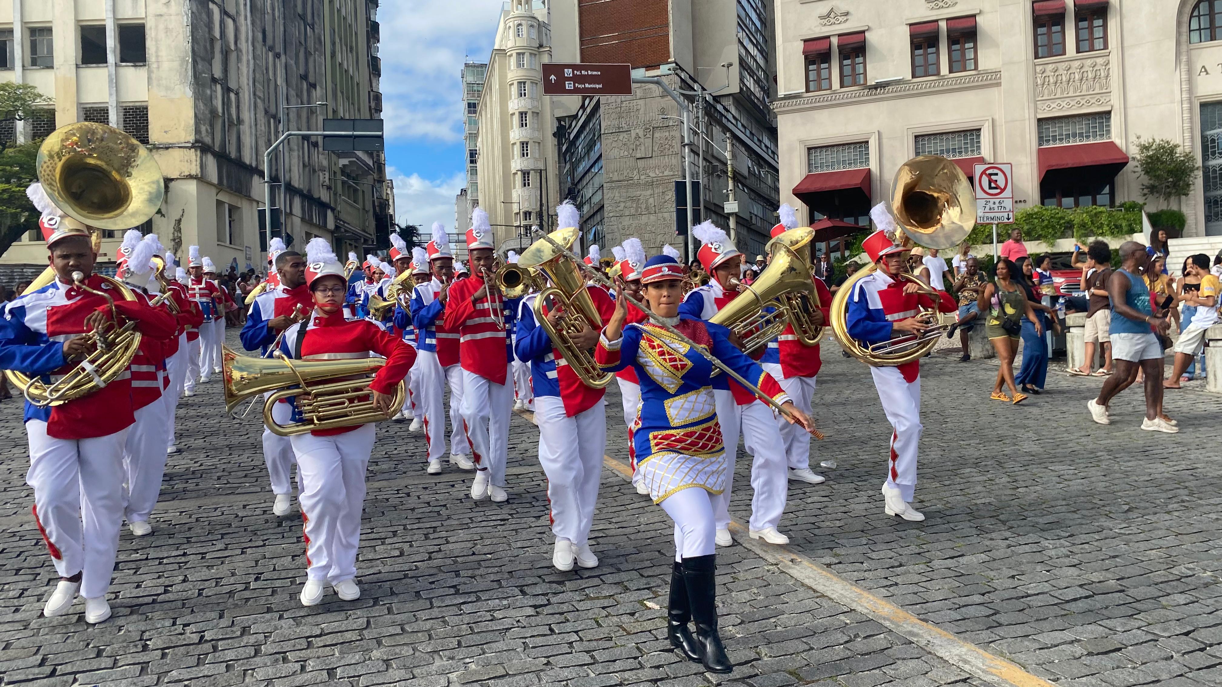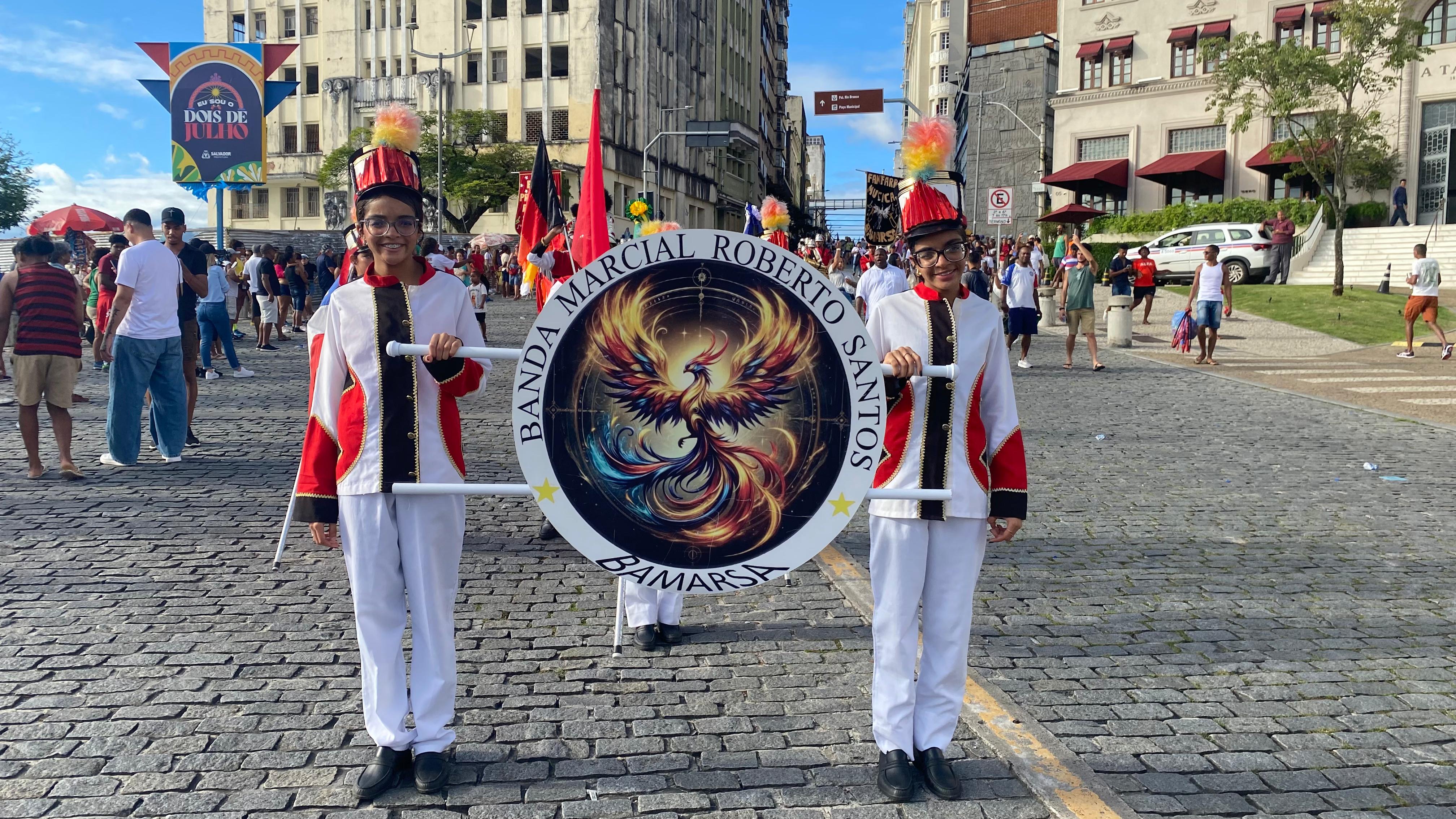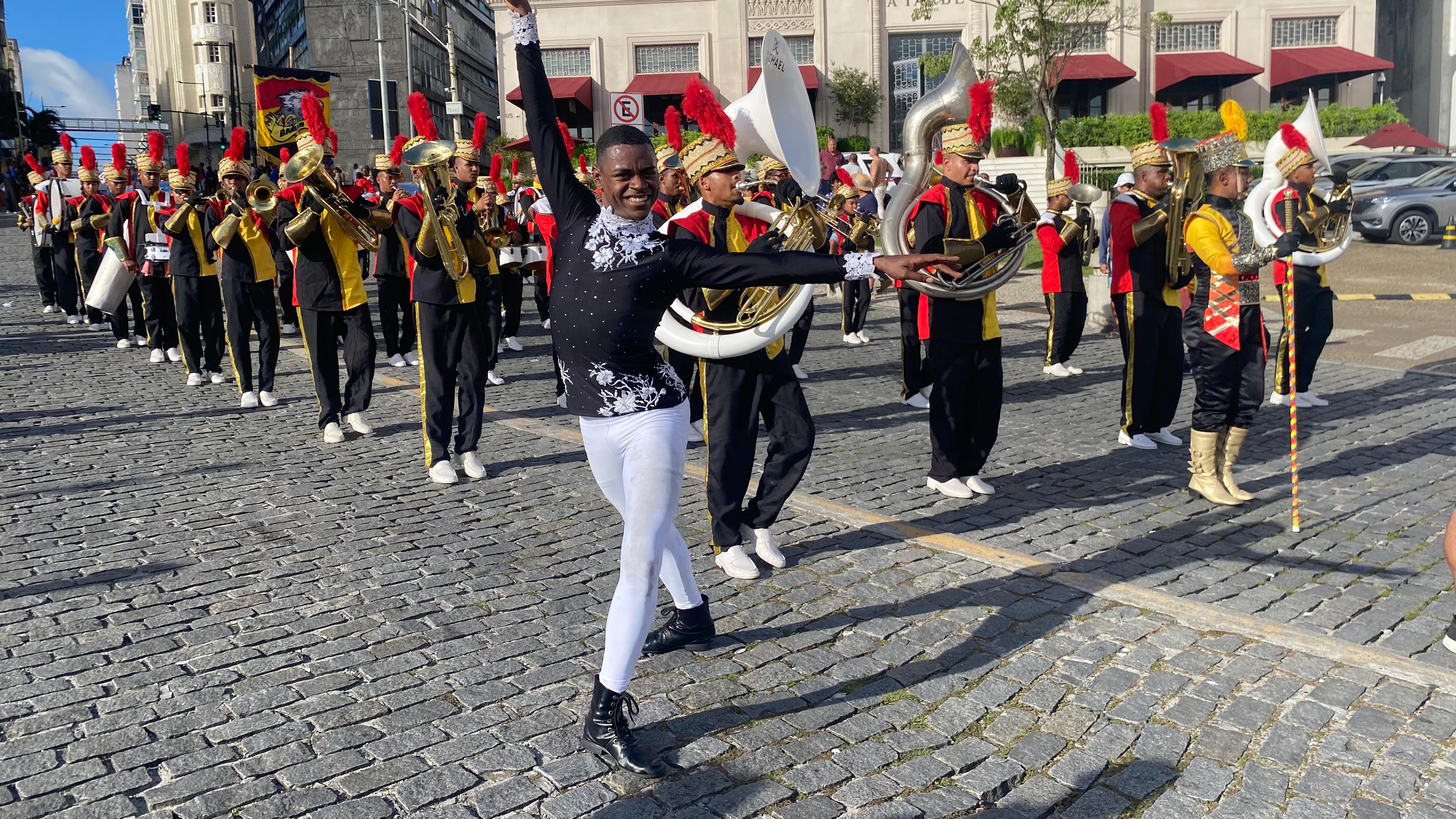 “Entrei por incentivo de amigos e da família. Meu pai era músico e aprendi com ele a tocar instrumentos, como bateria e percussão. Na fanfarra, além de melhorar as minhas notas e o meu comportamento, aprimorei meu talento musical”, disse o jovem, que, atualmente, toca o instrumento de sopro chamado Sousafone.