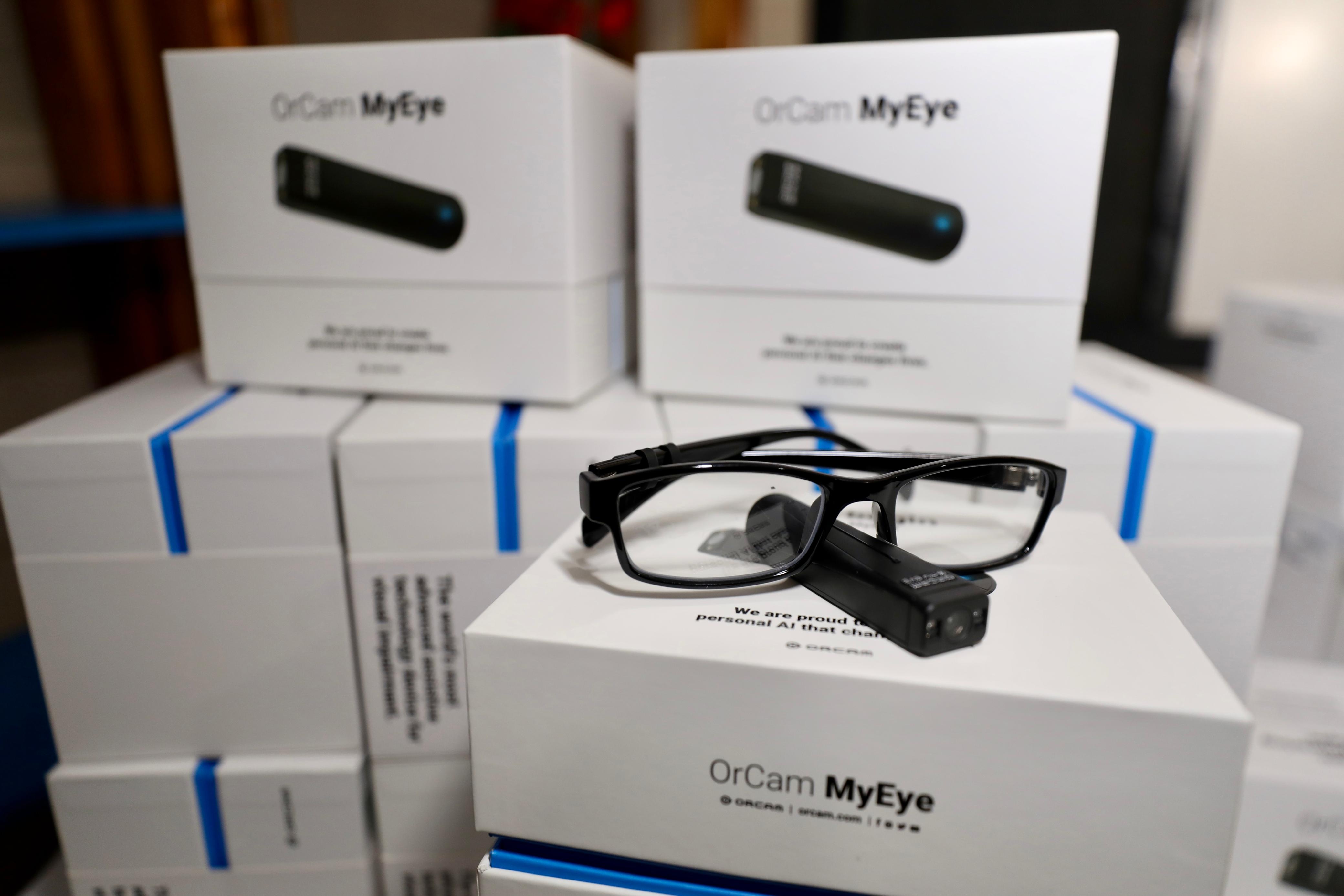 Tecnologia e autonomia - O Orcam MyEye é um dispositivo que se conecta à armação de todo tipo de óculos com a função de converter textos em áudio, sem a necessidade de conexão com a internet. O equipamento consiste em um dispositivo de visão artificial com a tecnologia assistiva e vestível com uma câmera inteligente, leve (22,5 gramas), que lê instantaneamente textos em qualquer superfície.
