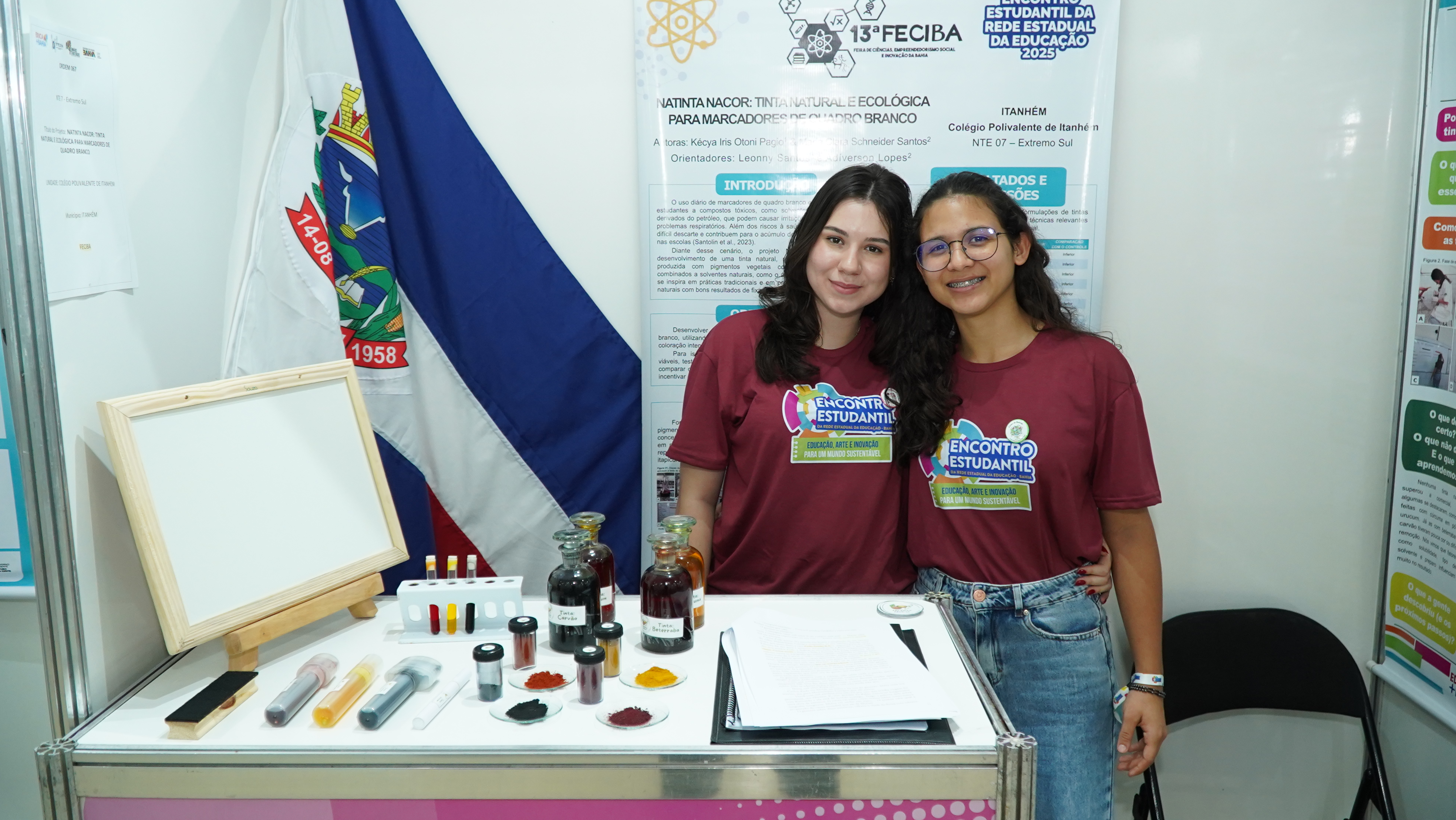 Outro projeto que chama a atenção pela originalidade é o trabalho “Geleia de beterraba: alternativa para o consumo de vegetais na alimentação escolar”, das estudantes Caline Oliveira e Mariângela Campos, do Colégio Estadual de Tempo Integral de Itambé. As jovens, que fazem o curso técnico em Nutrição e Dietética, criaram uma geleia nutritiva e saborosa a partir da beterraba, com o objetivo de reduzir o desperdício e incentivar hábitos alimentares mais saudáveis entre os estudantes. A professora Samaimana Santos, que orientou a dupla, relatou que a ideia surgiu da observação do cotidiano escolar. “Percebemos o desperdício de beterraba na merenda e desenvolvemos a geleia para reaproveitar o alimento como sobremesa. Além disso, aproveitamos a casca para produzir uma farinha usada em barras de cereal. Usamos 100% da beterraba”.