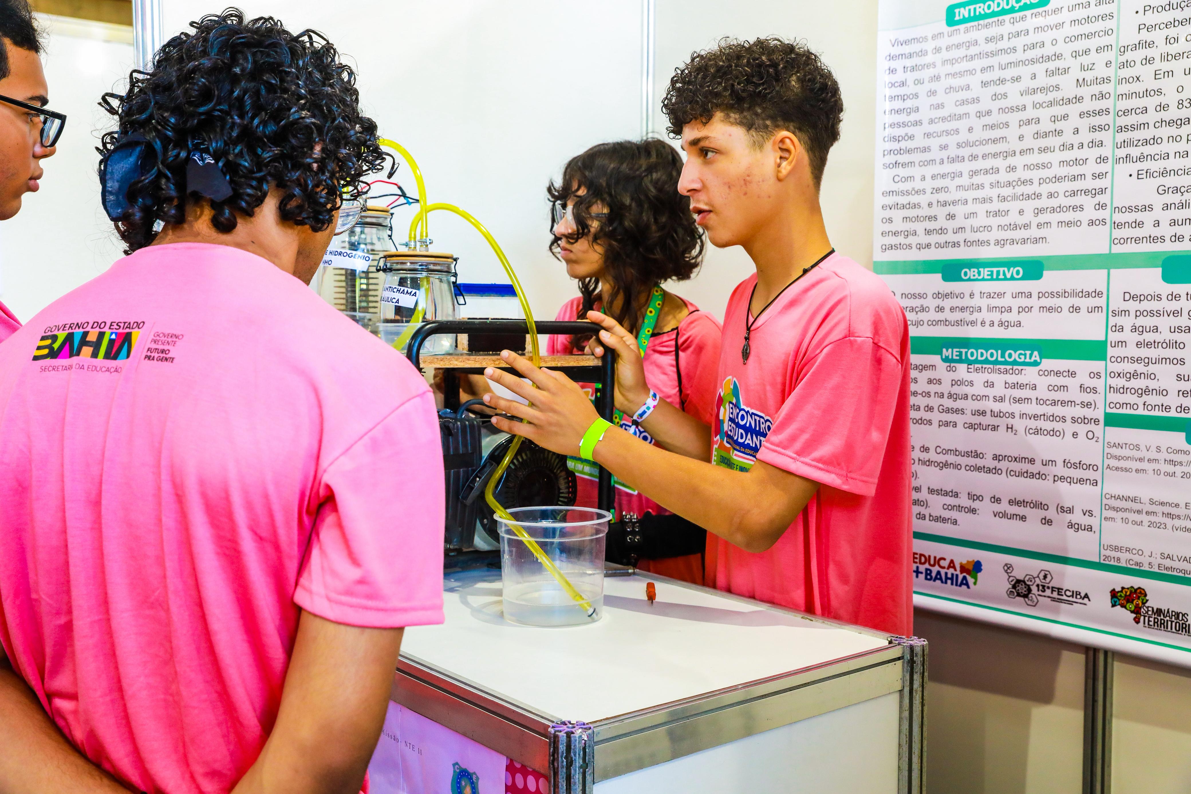 Chega ao fim, nesta quinta-feira (8), a última etapa territorial do Encontro Estudantil 2025, realizada no Parque de Exposições da Bahia, em Salvador. Durante dois dias, mais de 800 estudantes e 410 professores da rede estadual ocuparam o espaço para apresentar, com entusiasmo e criatividade, 410 projetos que destacam a ciência, a cultura e a tecnologia desenvolvidas ao longo do ano nas escolas. Neste último encontro da etapa territorial, foram reunidos representantes de 142 escolas, de 97 municípios, vinculadas a 13 Núcleos Territoriais de Educação (NTEs).