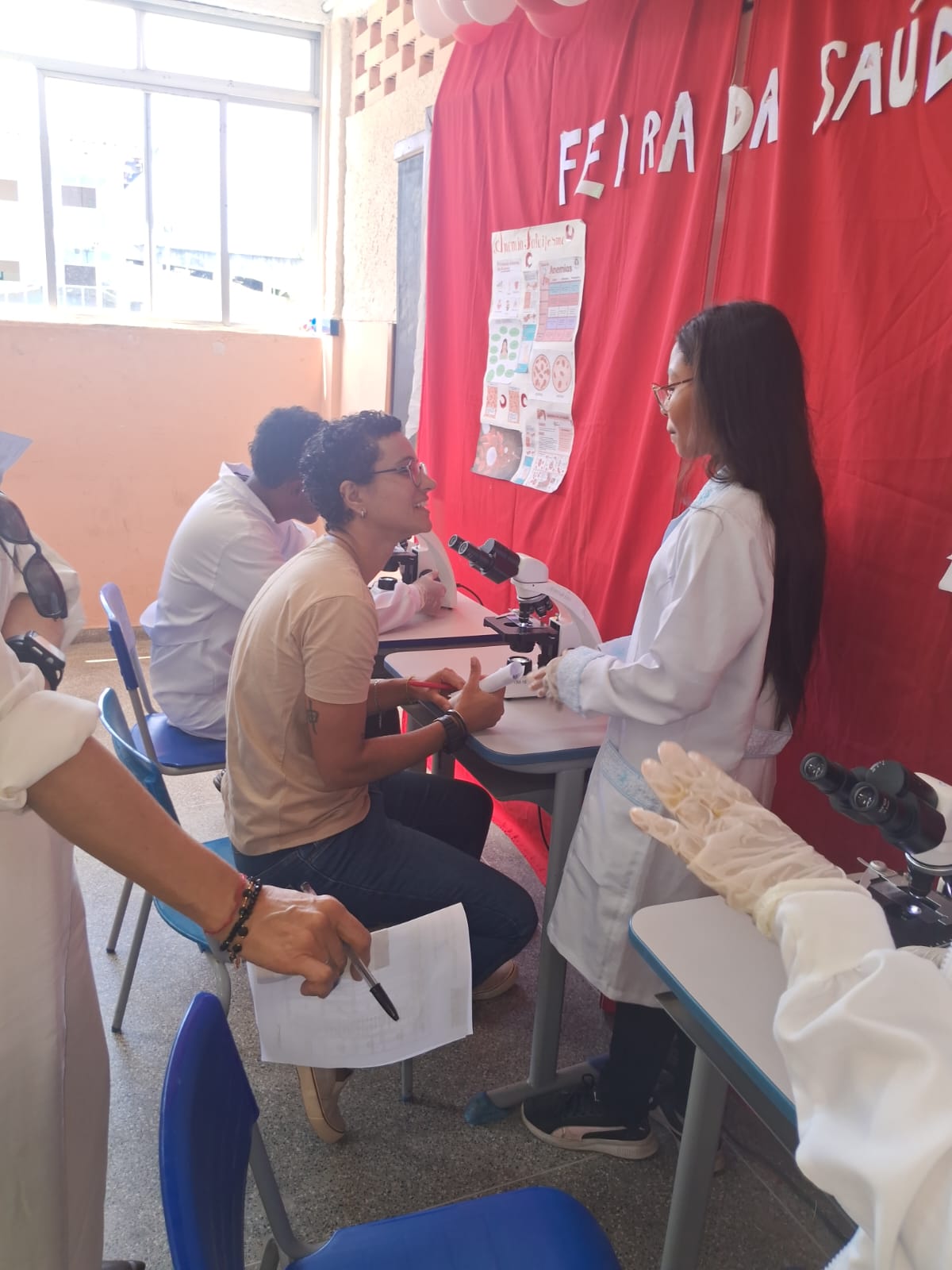 Ao longo do dia, alunos dos cursos técnicos de Biotecnologia, Enfermagem, Nutrição, Análises Clínicas e Segurança do Trabalho assumiram o protagonismo com atividades que uniram teoria e prática. A programação reuniu oficinas, exposições e atendimentos gratuitos, incluindo vacinação, aferição de pressão, testes de glicemia, tipagem sanguínea e orientações sobre prevenção de doenças crônicas. “É um prazer fazer parte desta instituição e testemunhar como nossos estudantes aplicam os aprendizados em sala de aula e retribuem à sociedade o trabalho desenvolvido ao longo do ano letivo”, destacou a professora de Ética Profissional e Tecnologia Social, Daniela Machado.