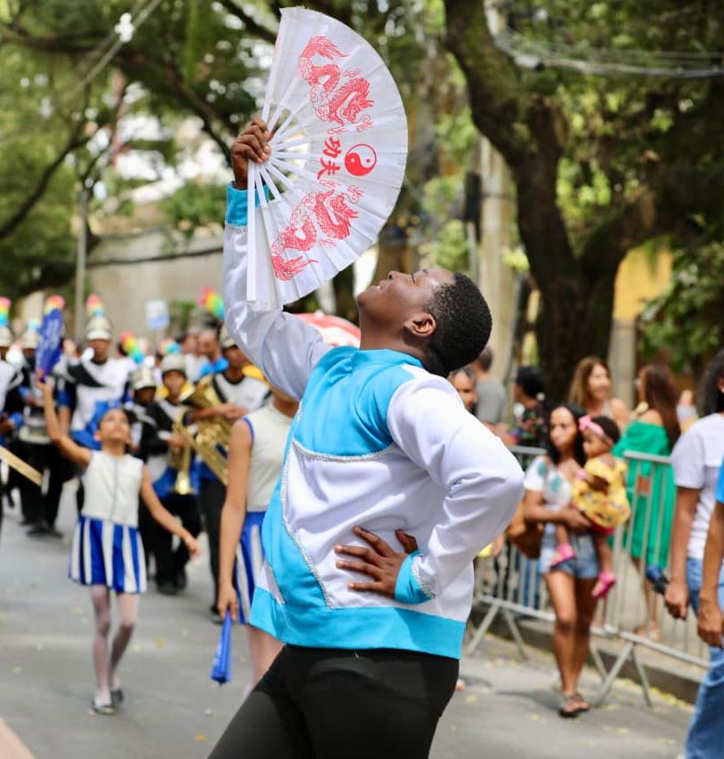 Professora disciplinar do Azevedo Fernandes, Hilda Furacão, como é conhecida na comunidade, marca presença todos os anos no 7 de Setembro atuando na baliza. “Participar da fanfarra do colégio onde ensino é sempre uma alegria sem fim e é muito representativo para mim. É uma oportunidade de mostrar o potencial da dança e celebrar com os estudantes cada conquista nossa”, revelou Hilda, que se dedica, ainda, a um trabalho social voltado à dança com jovens do Pelourinho.