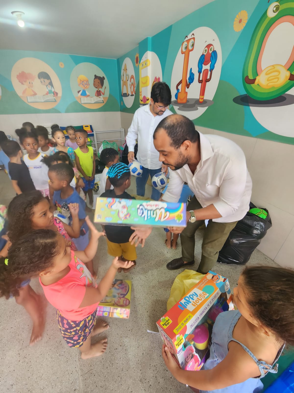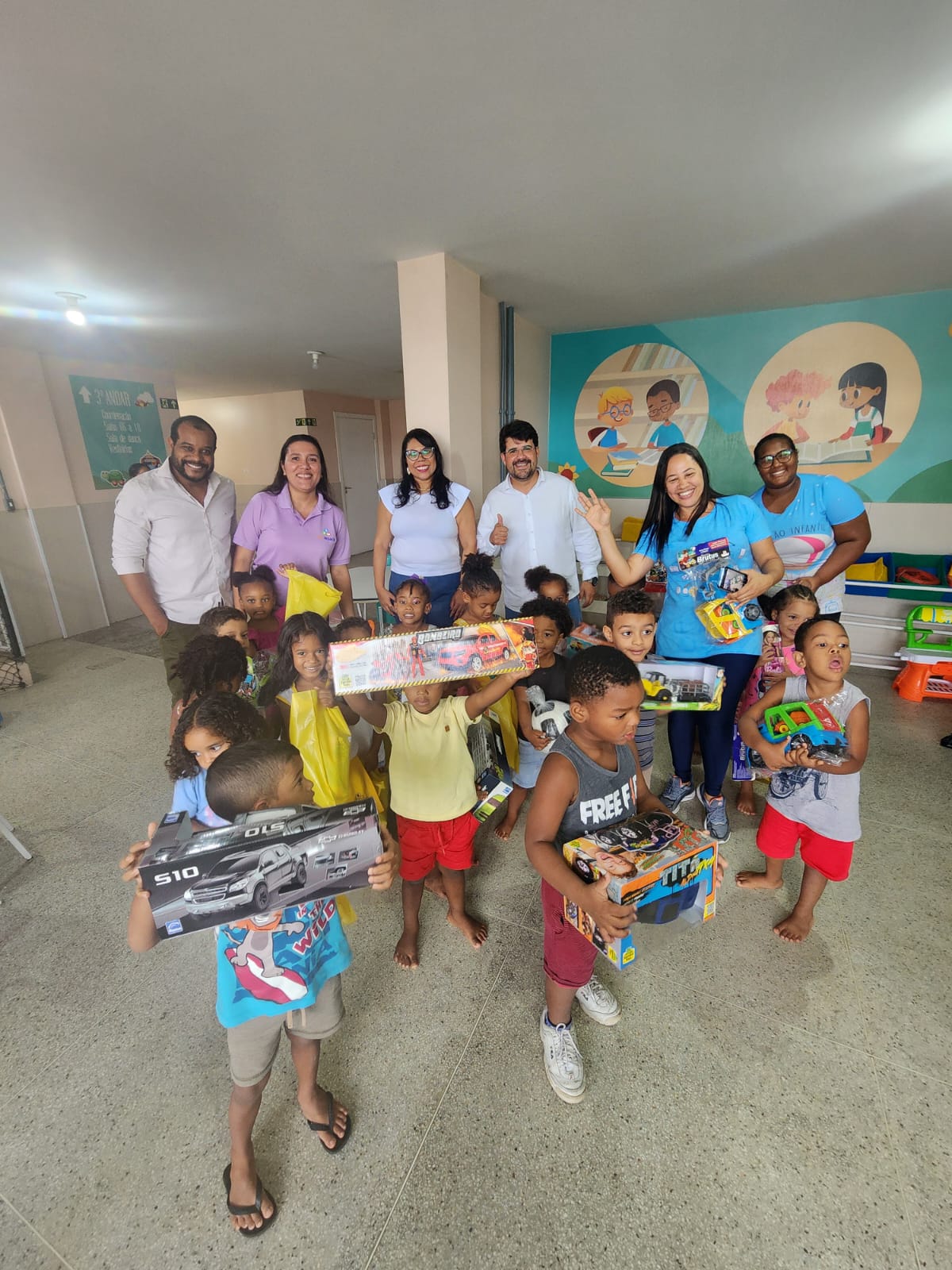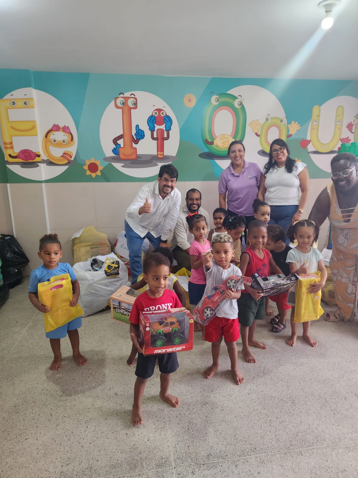 As comemorações do Dia das Crianças começaram mais cedo na Creche Comunitária Mais Infância, mantida pelas Voluntárias Sociais da Bahia (VSBA) e com o apoio do Governo do Estado, no bairro do Lobato, com uma semana de atividades e a entrega de presentes. Desde segunda-feira (6), os 112 meninos e meninas, de zero a cinco anos, participaram de uma programação planejada para garantir diversão, acolhimento e fortalecimento dos vínculos com a comunidade. O encerramento ocorreu na manhã desta sexta-feira (10), com um desfile de fantasias e a presença da equipe da Coordenação de Infraestrutura (COINF) da SEC, que realizou a distribuição dos brinquedos às crianças.