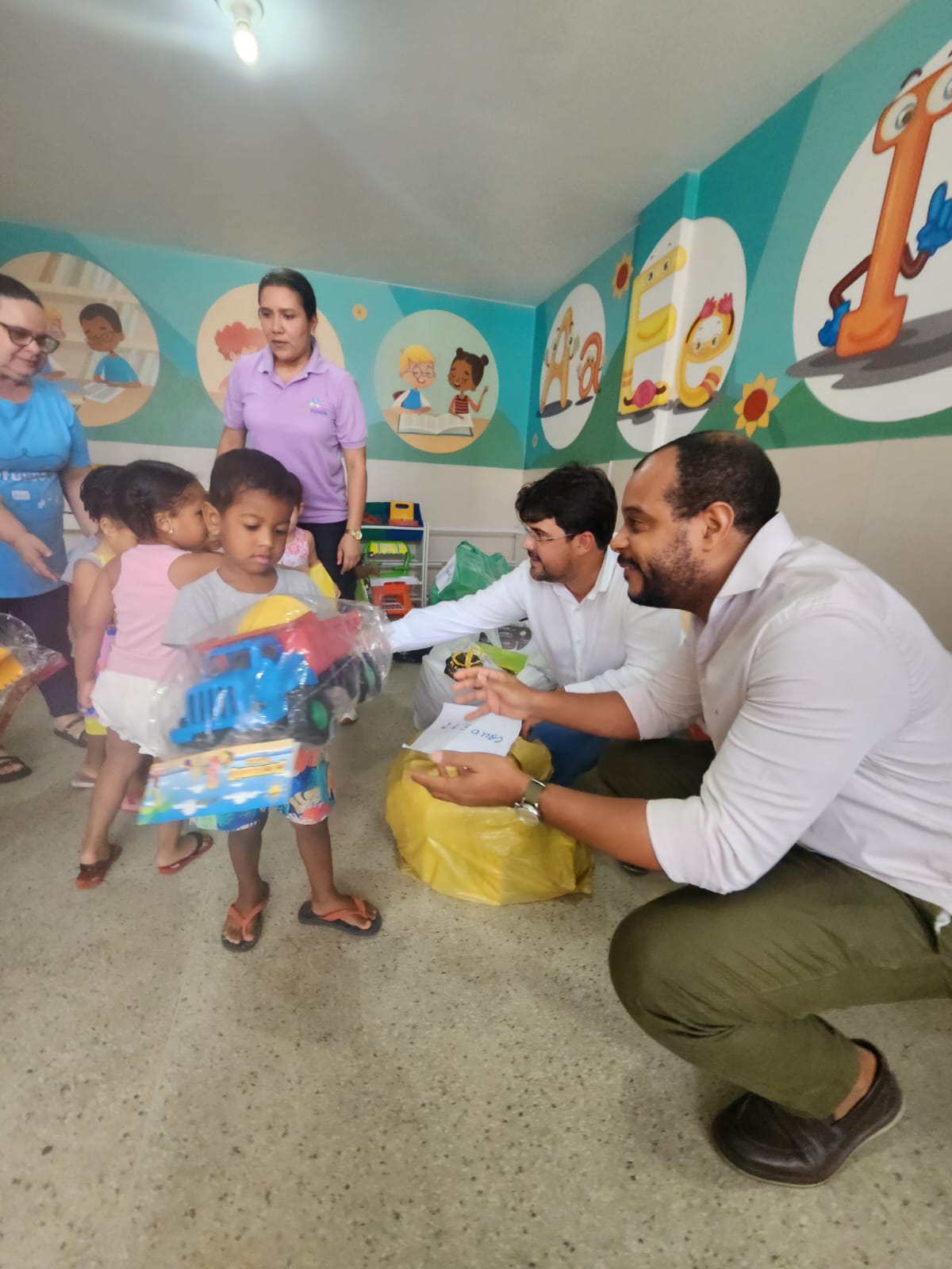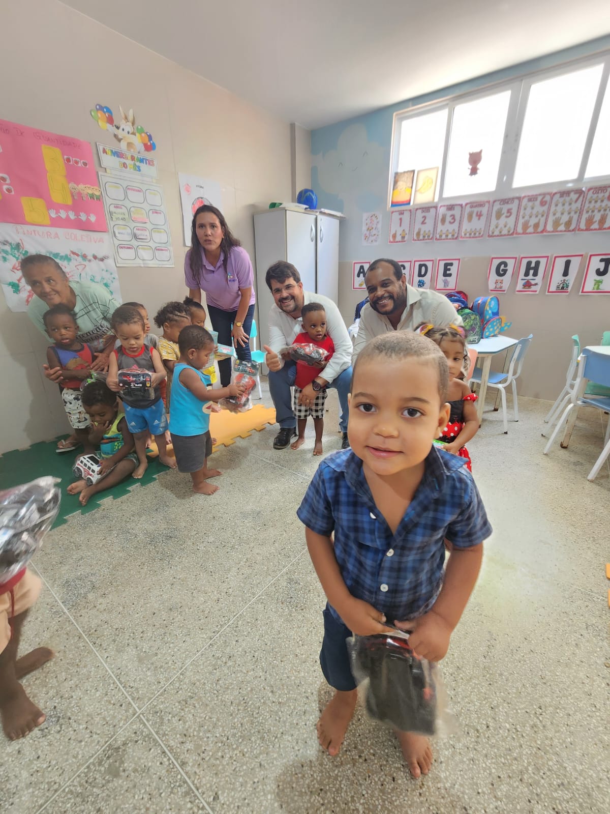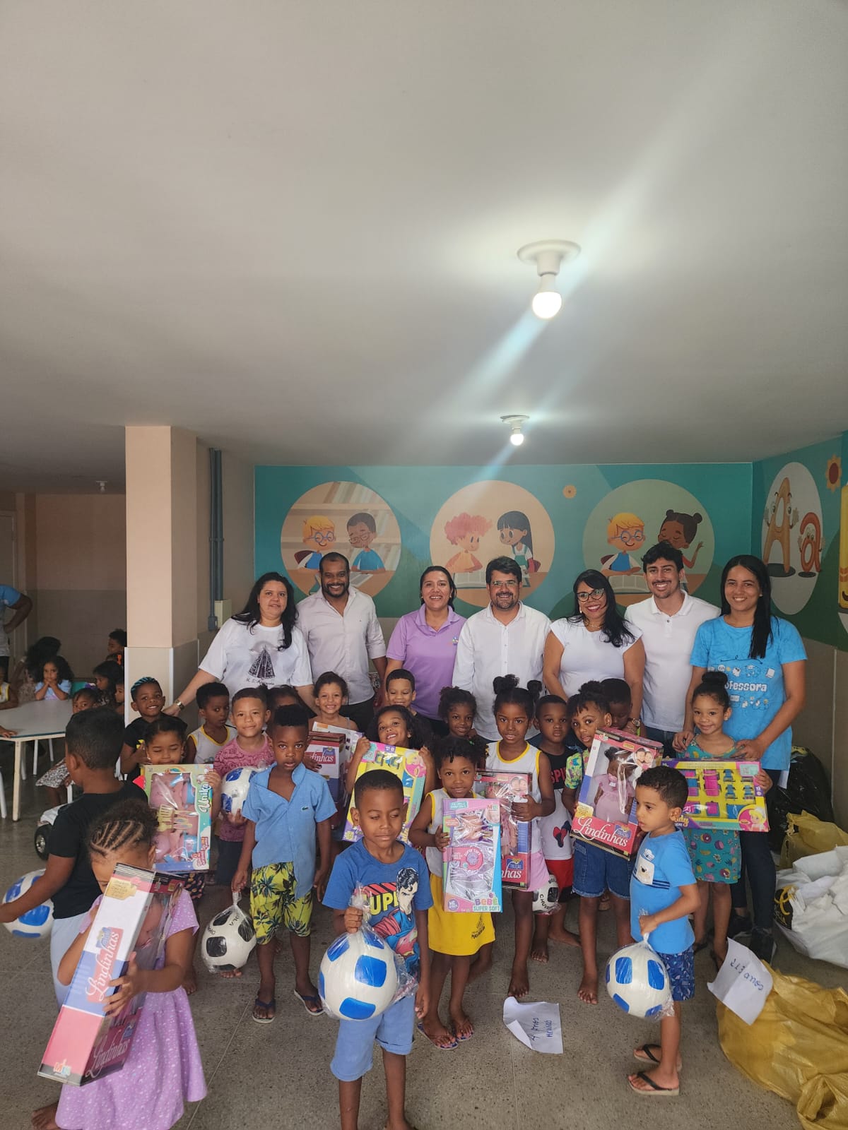 As comemorações do Dia das Crianças começaram mais cedo na Creche Comunitária Mais Infância, mantida pelas Voluntárias Sociais da Bahia (VSBA) e com o apoio do Governo do Estado, no bairro do Lobato, com uma semana de atividades e a entrega de presentes. Desde segunda-feira (6), os 112 meninos e meninas, de zero a cinco anos, participaram de uma programação planejada para garantir diversão, acolhimento e fortalecimento dos vínculos com a comunidade. O encerramento ocorreu na manhã desta sexta-feira (10), com um desfile de fantasias e a presença da equipe da Coordenação de Infraestrutura (COINF) da SEC, que realizou a distribuição dos brinquedos às crianças.