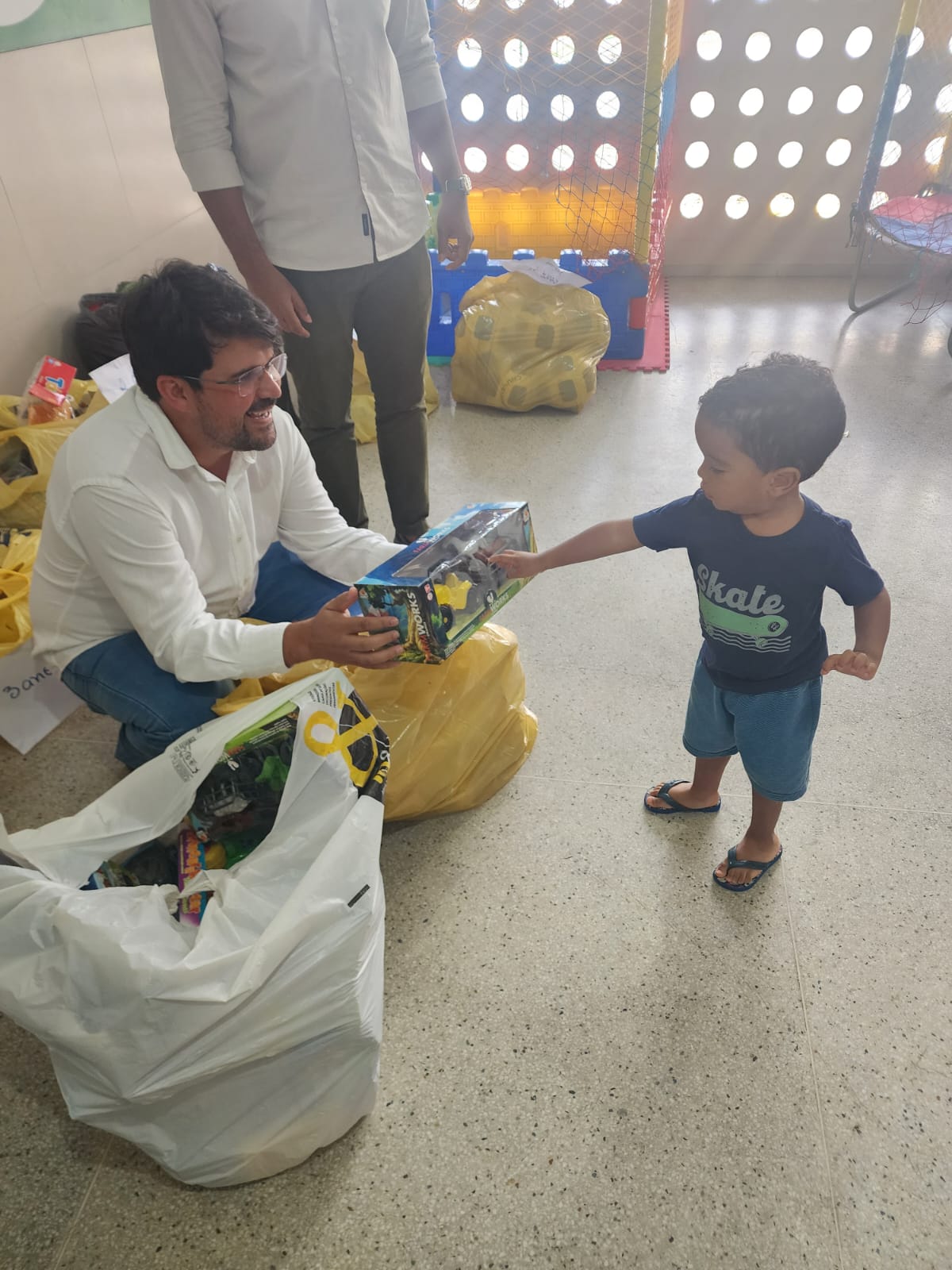 O coordenador da COINF/SEC, Afonso Requião, ressaltou a importância da ação. “A presença da nossa equipe é uma forma de aproximar a Secretaria das comunidades que mais precisam. Distribuir os presentes e participar do encerramento da semana reforça o compromisso do Estado com a infância, garantindo cuidado, atenção e esperança para essas famílias”.