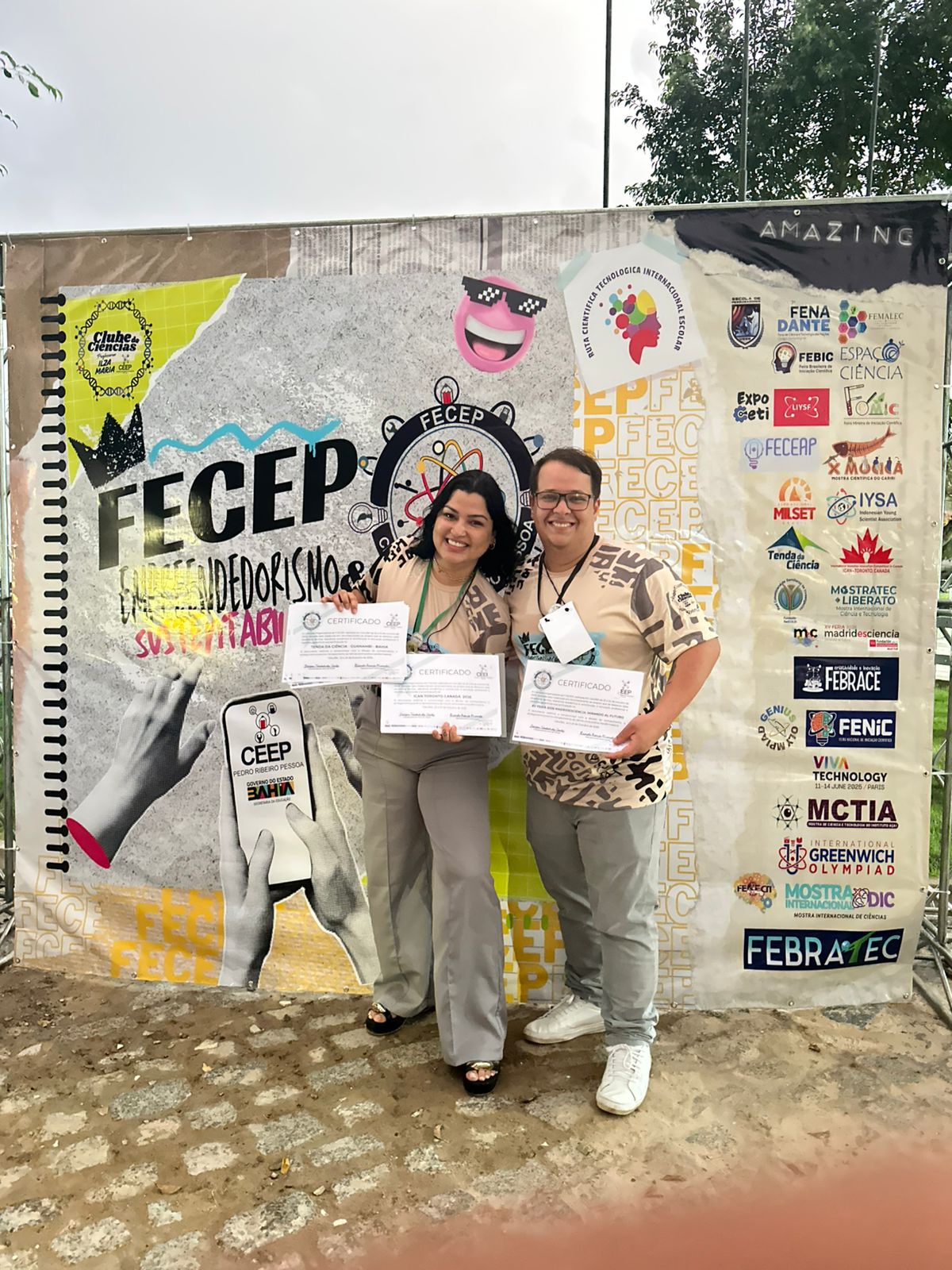 Com o projeto “Wall-e Guardião da Praia: areia limpa, vida marinha protegida”, os estudantes do Colégio Estadual Luiz Viana Filho, que cursam a 1ª série do Ensino Médio integrado ao curso técnico em Biotecnologia e fazem parte do Clube de Ciências CELVF, conquistaram o 1º lugar na categoria Ciências Exatas e receberam 11 credenciais (nove nacionais e duas internacionais). Já com o projeto “STEAM & TEA: conectando mundos”, eles concorreram na categoria Ciências Humanas e receberam seis credenciais (quatro internacionais e duas nacionais), totalizando 17 credenciamentos. Os dois projetos foram orientados pela professora Hevelynn Martins.