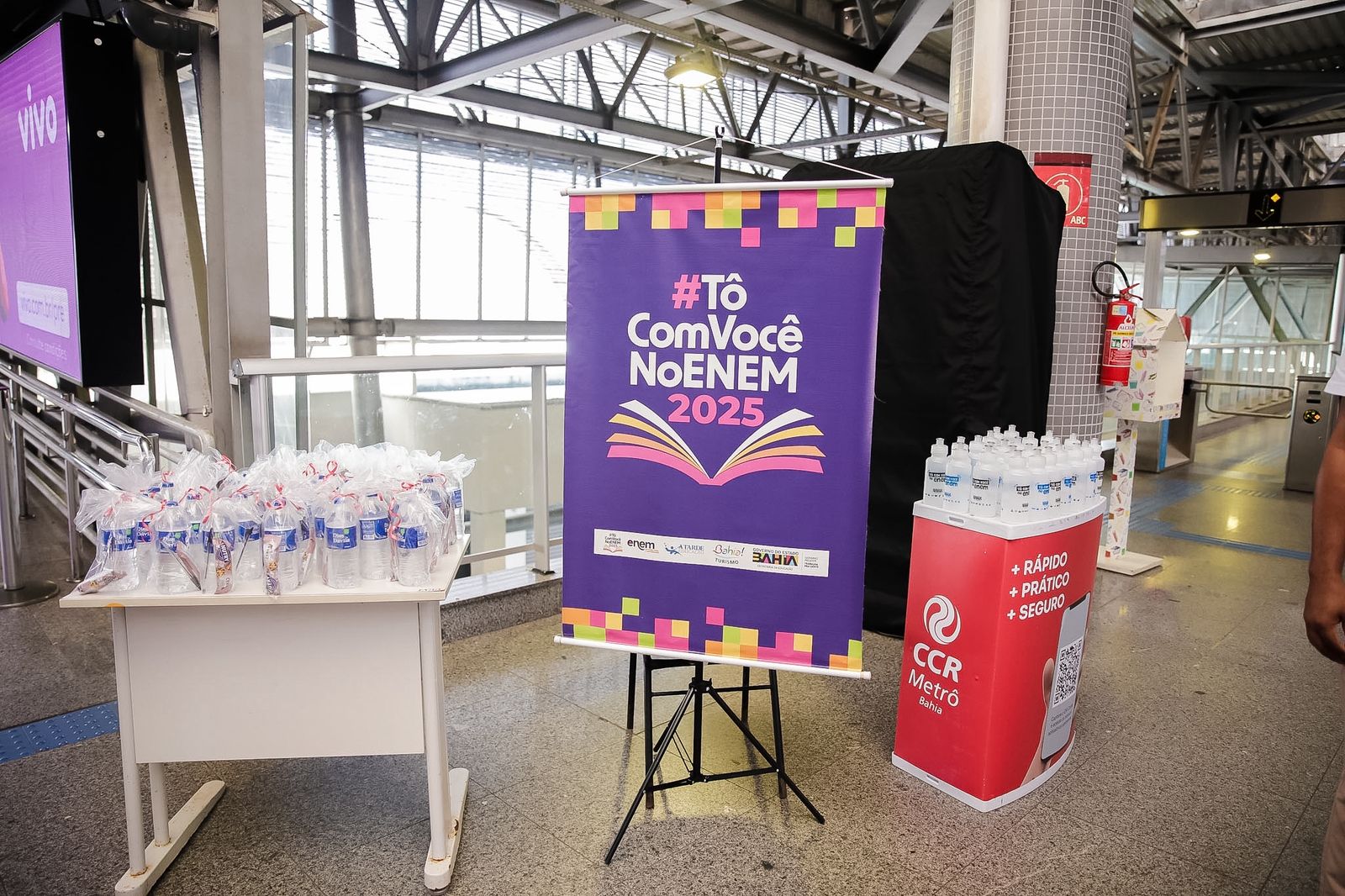 Assim como ocorreu no primeiro dia de provas do Enem, os estudantes da rede estadual de ensino foram acolhidos, na capital e no interior da Bahia, pelas equipes da Secretaria da Educação do Estado (SEC) que, além de apoiá-los e motivá-los, distribuíram kits contendo água, caneta esferográfica de tinta preta, barra de cereal e garrafinha, nas portas das escolas e nas estações de metrô. A iniciativa integra a ação “Tô com Você no Enem”, que visa a preparação dos estudantes, desde o processo de inscrição até a realização do exame. Soma-se a isso a realização de lives com dicas para as provas, simulados nas escolas, Concurso Redação Nota 1000 e aulões preparatórios, a exemplo do Prepara Enem, que ocorreu em Salvador e foi transmitido no YouTube.