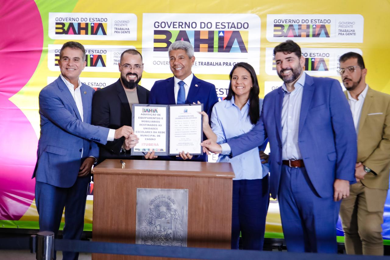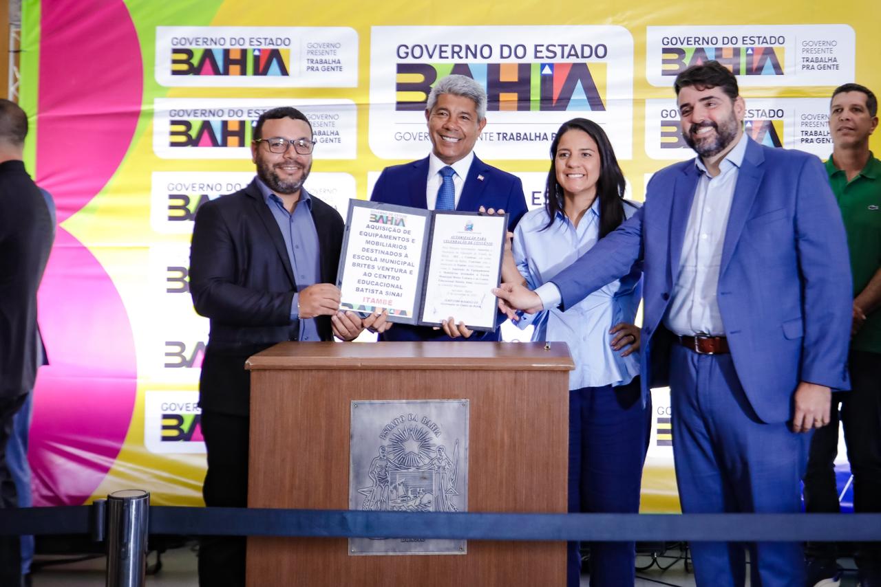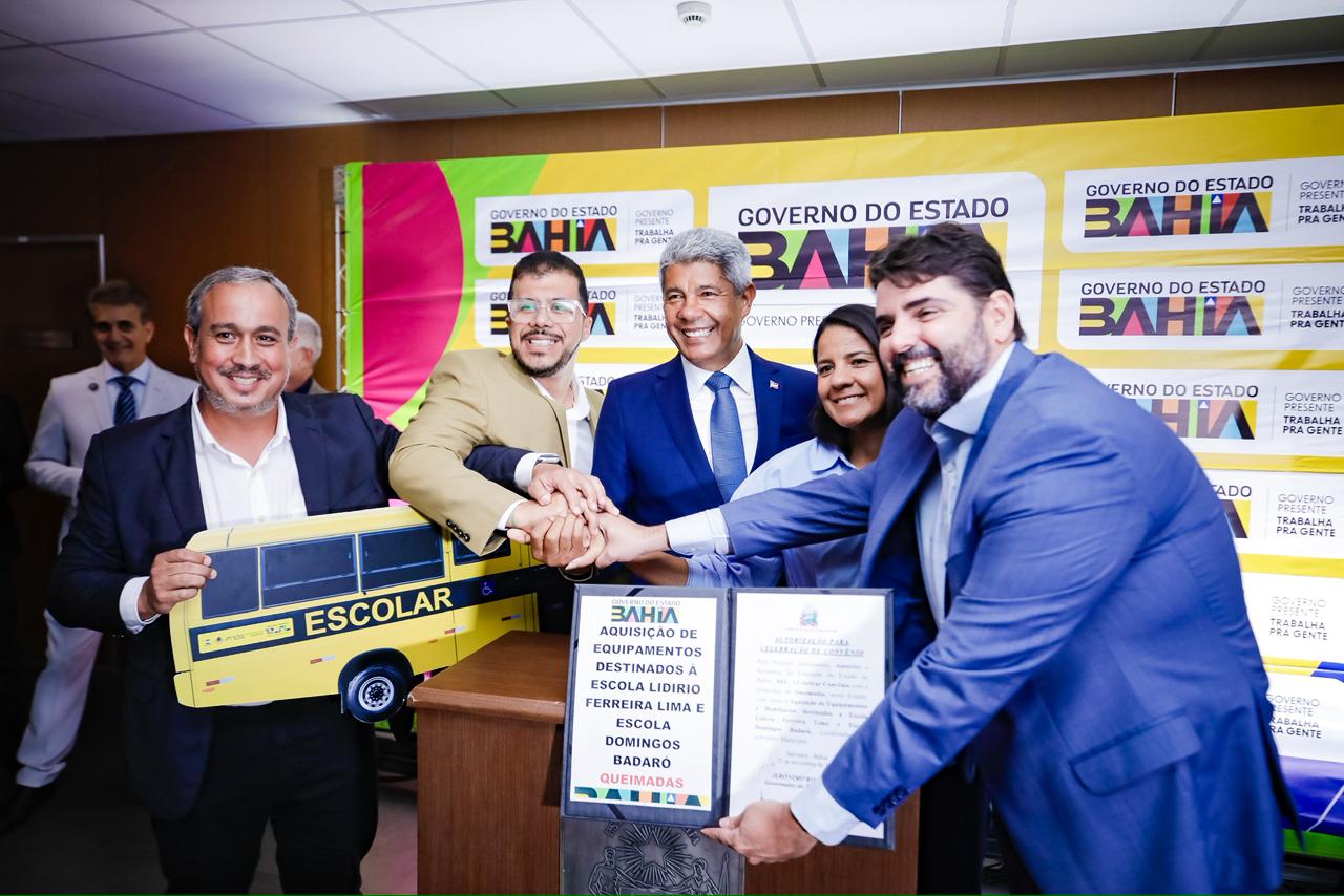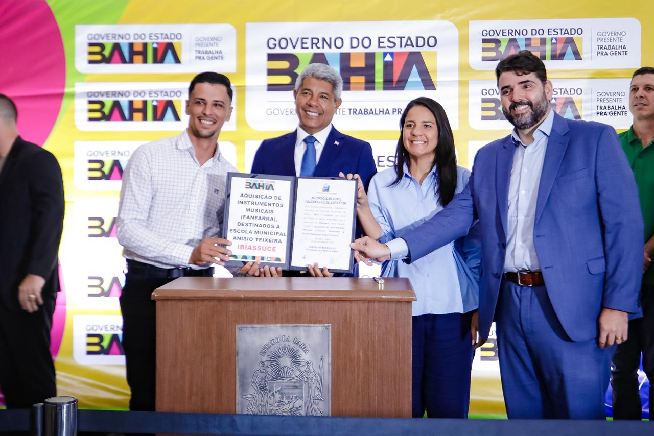 “O evento de hoje celebra a parceria com 14 municípios, que resultará em investimentos voltados à cultura e à educação, incluindo fanfarras, mobiliário, construção de escolas e entrega de equipamentos como ônibus escolar. Nosso objetivo é iniciar o ano letivo com essa colaboração, garantindo o funcionamento das escolas de tempo integral do Estado e apoiando também as redes municipais, da creche ao fundamental. Agradeço a todos pela parceria, à Assembleia Legislativa e ao Governo Federal, que fortalecem a Bahia como um estado educador”, afirmou o governador Jerônimo Rodrigues.