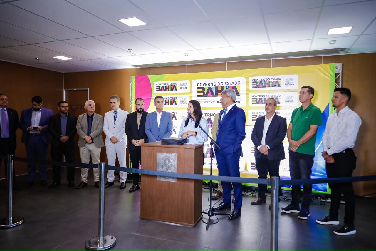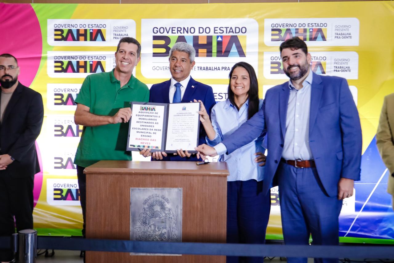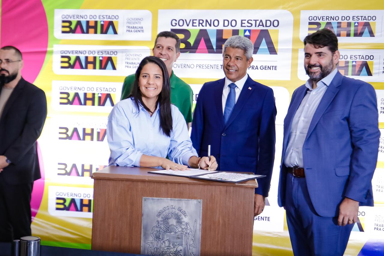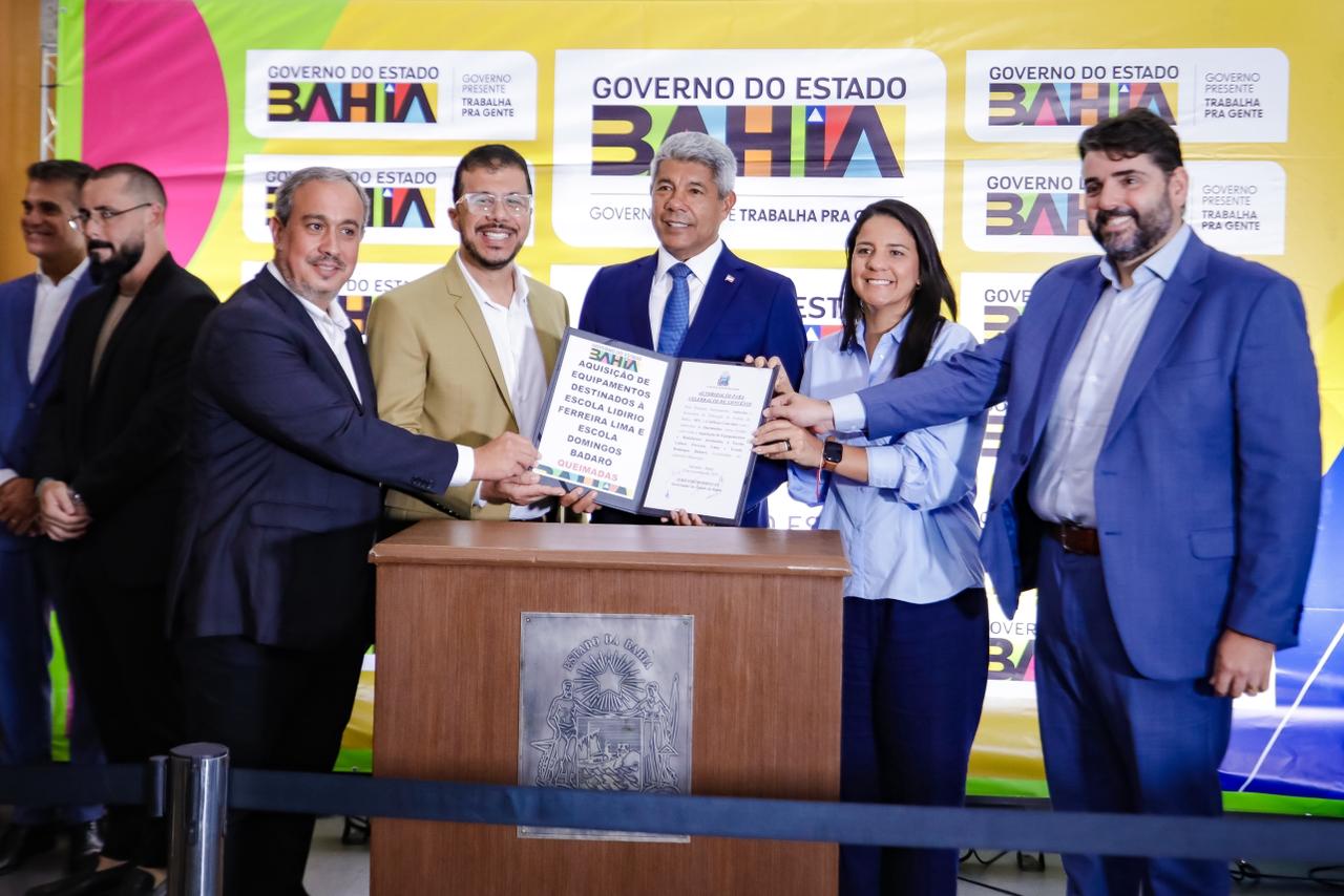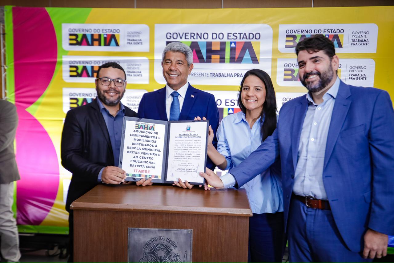 “O evento de hoje celebra a parceria com 14 municípios, que resultará em investimentos voltados à cultura e à educação, incluindo fanfarras, mobiliário, construção de escolas e entrega de equipamentos como ônibus escolar. Nosso objetivo é iniciar o ano letivo com essa colaboração, garantindo o funcionamento das escolas de tempo integral do Estado e apoiando também as redes municipais, da creche ao fundamental. Agradeço a todos pela parceria, à Assembleia Legislativa e ao Governo Federal, que fortalecem a Bahia como um estado educador”, afirmou o governador Jerônimo Rodrigues.