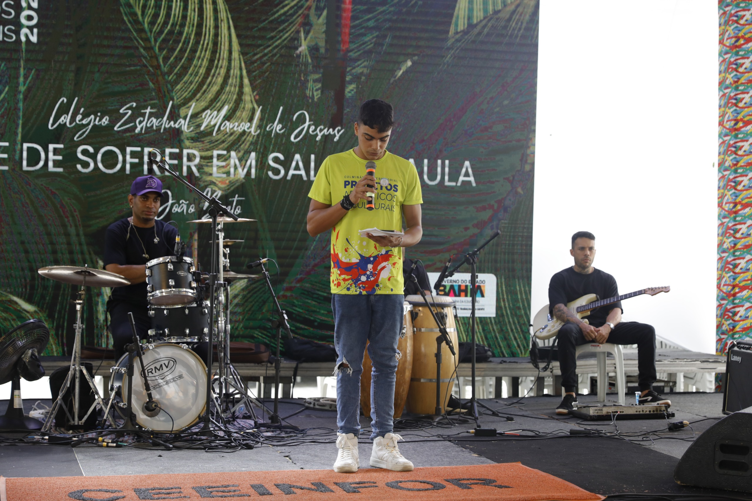 O Centro Estadual de Educação, Inovação e Formação da Bahia (CEEINFOR) Mãe Stella recebeu, nesta quinta-feira (27), a culminância dos Projetos Artísticos e Culturais das unidades de ensino do Núcleo Territorial de Educação de Salvador e Região Metropolitana (NTE 26). Entre as 244 escolas da rede estadual que integram o núcleo, 29 foram classificadas para apresentar produções em poesia, dança, teatro, artes visuais, canto e música. A programação reuniu estudantes dos 13 municípios atendidos pelo NTE, em uma tarde dedicada à criatividade e à expressão estudantil.
