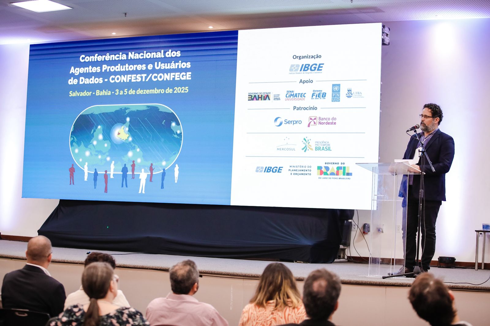 “Os dados produzidos pelo IBGE e por outras instituições públicas são o que nos permitem planejar com precisão, identificar desigualdades, antecipar demandas e construir políticas mais justas. A Bahia vem investindo fortemente no uso de bases oficiais para organizar iniciativas nas áreas estratégicas do Estado”, afirmou o governador, Jerônimo Rodrigues, na cerimônia de abertura do evento.