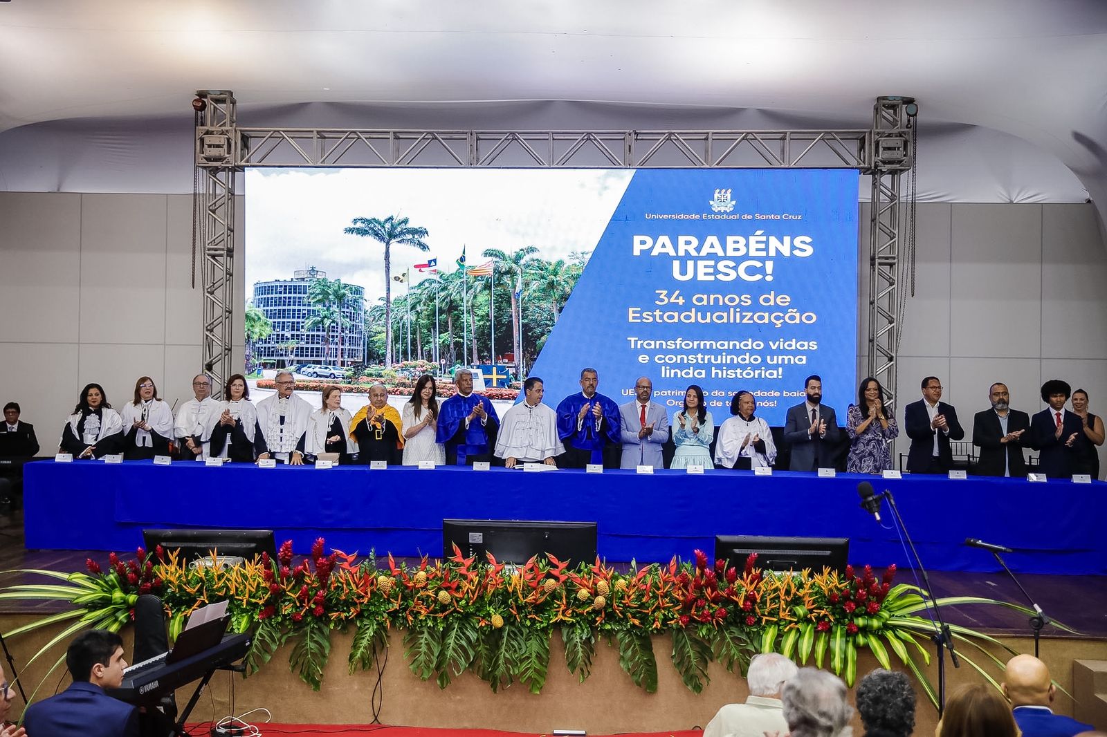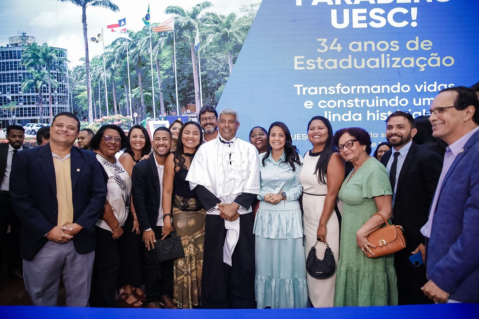 Nesta sexta-feira (5), a Universidade Estadual de Santa Cruz (Uesc) comemorou 34 anos de estadualização com um marco histórico: a outorga do título de Doutor Honoris Causa ao governador Jerônimo Rodrigues, que se torna o primeiro governador, em exercício da função, a receber a honraria na história da instituição. A sessão solene especial realizada pelo Conselho Universitário (Consu) celebrou a trajetória da universidade e reconheceu personalidades que contribuem de forma significativa para o desenvolvimento da Bahia e do país.