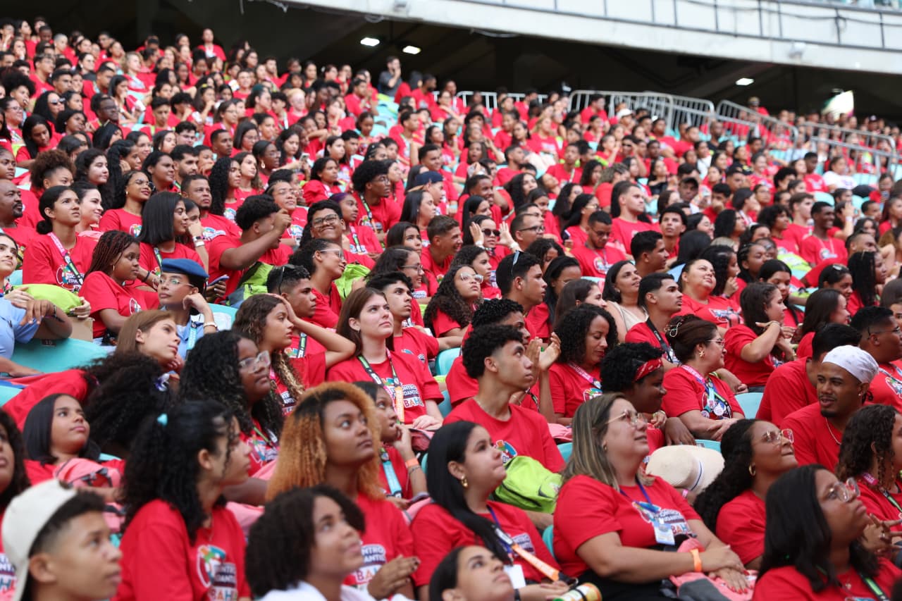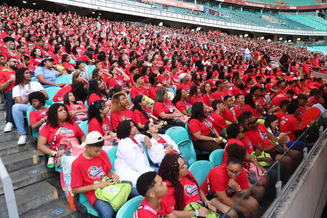 A edição do Encontro Estudantil da Rede Estadual da Educação deste ano conta com 10 mil participantes, um aumento de 3 mil em relação à edição de 2024. Ainda em relação ao ano passado, também cresceram os números de projetos apresentados (103 a mais, o equivalente a 13,4%) e de participação de estudantes do interior (600 a mais, 17%). Os dados, divulgados durante a abertura oficial do Encontro, na tarde desta terça-feira (9), na Arena Fonte Nova, em Salvador, indicam a consolidação do evento como um dos principais do calendário anual da rede estadual.