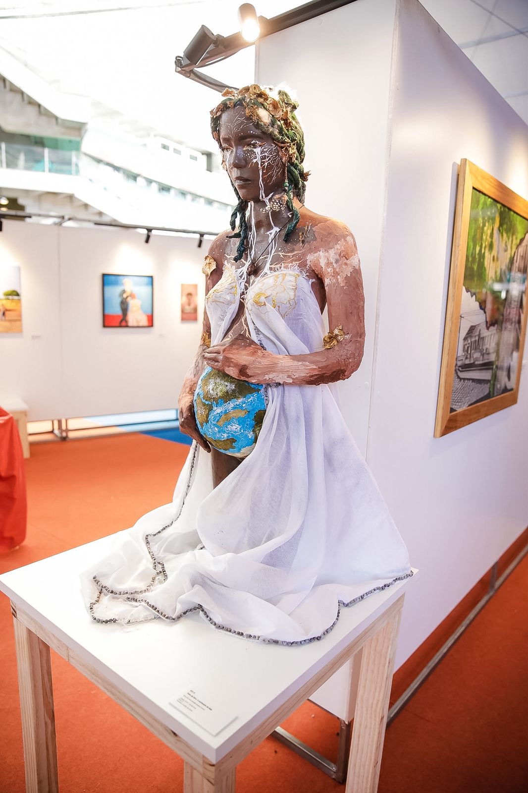 A estudante Maria Hevelly Santana, 18 anos, 3ª série do Ensino Médio, do Centro Territorial de Educação Profissional (CETEP) Sertão Forte, em Euclides da Cunha, atraiu a atenção dos visitantes com a sua escultura “O Sofrimento de Gaia”, do Projeto Artes Visuais Estudantis (AVE). “Eu escolhi esse nome porque fala muito sobre a nossa relação tóxica com o meio ambiente, porque a gente só extrai e retribui muito pouco. Então, eu quis colocar alguns elementos que remetessem a isso. O nome vem da mitologia grega, pois Gaia era meio que a representação humana da mãe natureza, a mulher que dá origem à vida”, esclareceu.