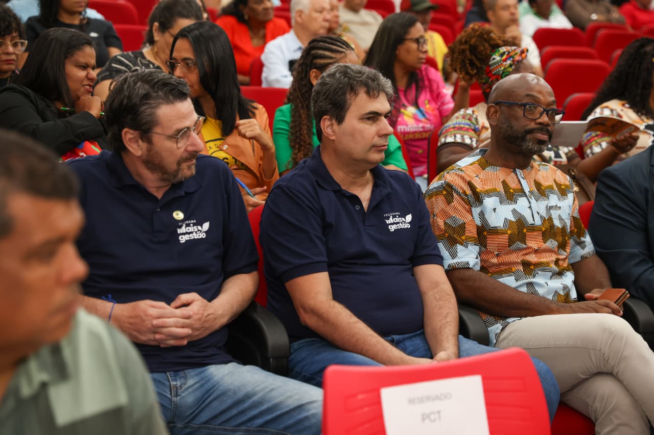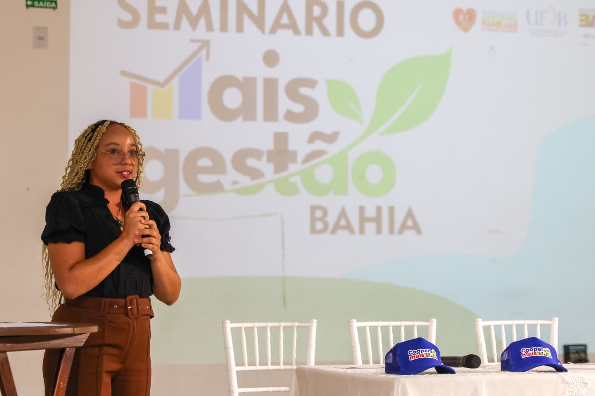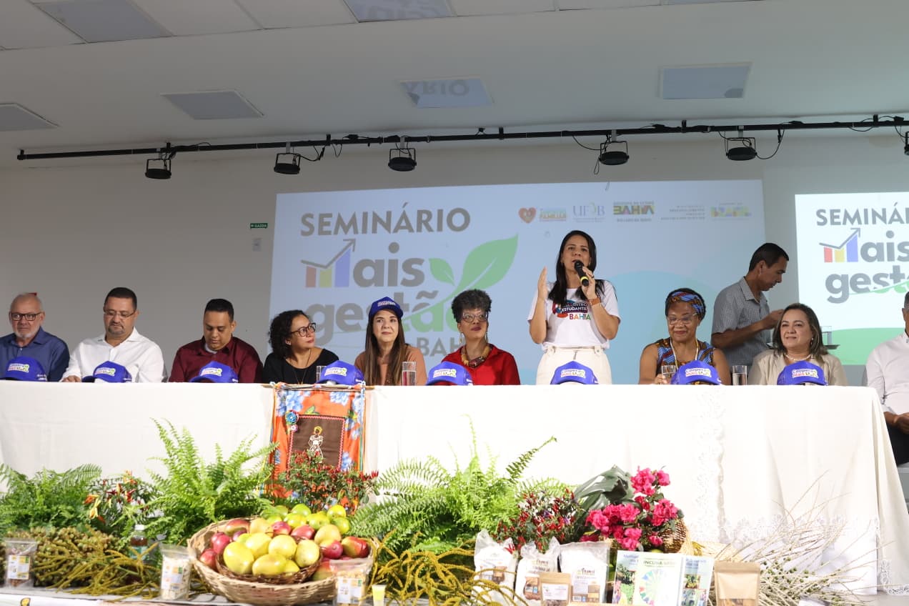 Coordenadora do projeto Mais Gestão Bahia e primeira-dama do Estado, Tatiana Veloso destacou a relevância do programa para a construção de um modelo de desenvolvimento inclusivo e sustentável. “O retorno do Mais Gestão marca a retomada de uma política pública essencial para o fortalecimento da agricultura familiar e para o diálogo com a educação e o desenvolvimento dos territórios. É muito simbólico que este seminário aconteça dentro de uma escola, um espaço que representa o compromisso do Estado com a educação. Este é um momento de acolhimento e de celebração da importância de cada pessoa aqui presente”, pontuou.