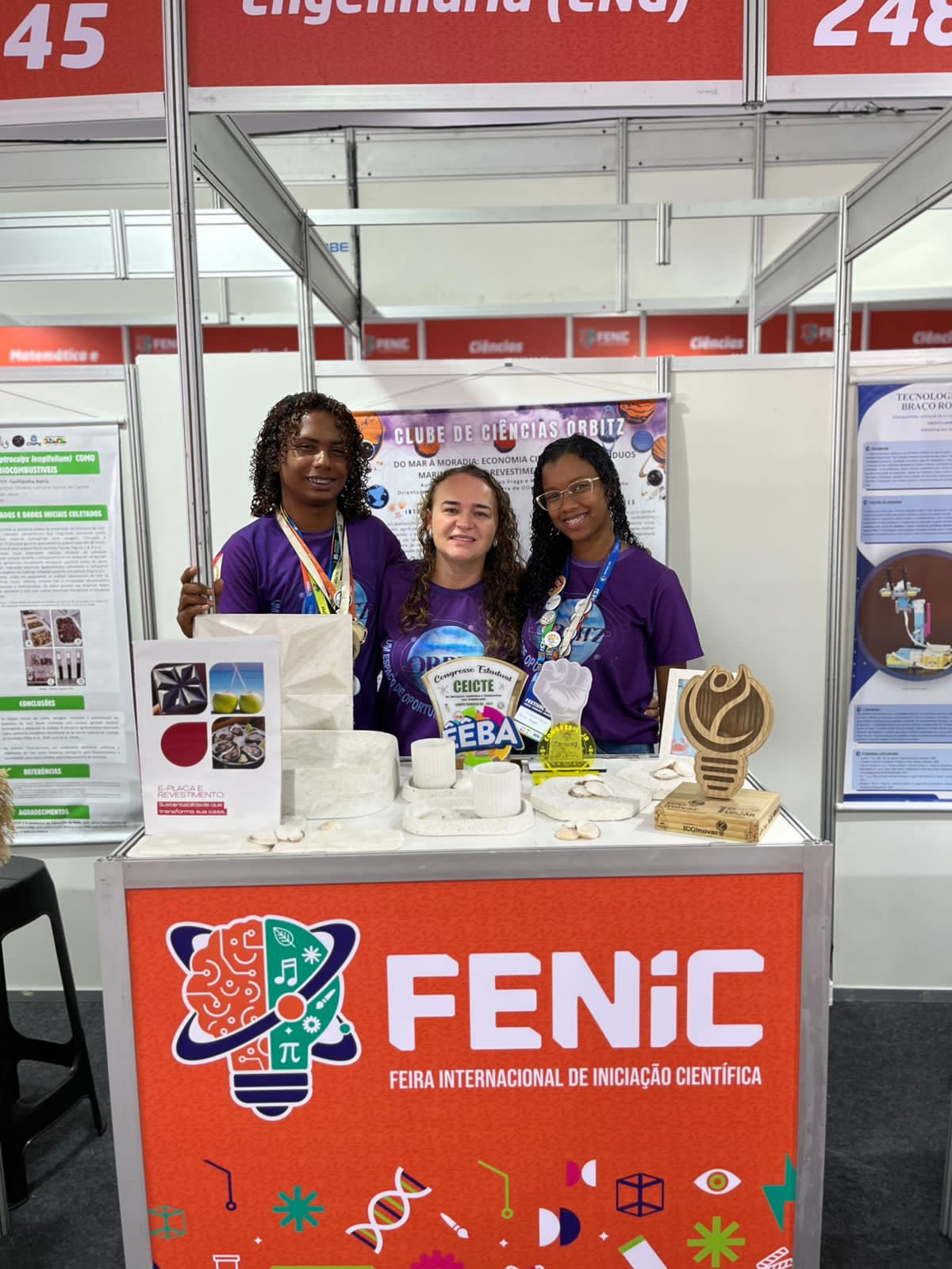 O Clube de Ciências Orbitz, do Colégio Estadual da Bahia – Central, em Salvador, conquistou o 1º lugar na categoria Engenharia e Matemática na 2ª edição da Feira Internacional de Iniciação Científica (FENIC). A premiação foi alcançada com o projeto ‘Do mar à moradia: economia circular com resíduos marinhos para revestimento sustentável’, que também recebeu o Prêmio Sebrae de Inovação. O evento ocorreu entre 11 e 13 de dezembro, na Escola SESI Djalma Pessoa.