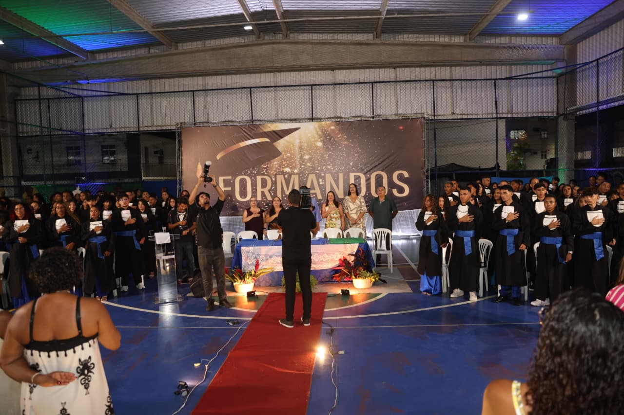 Com o objetivo de celebrar a finalização da Educação Básica, as escolas da rede estadual de ensino, da capital e interior, realizaram, nessa sexta-feira (19), a formatura dos concluintes do Ensino Médio Regular e Tempo Integral. Este ano, a rede estadual contou com 102.608 concluintes em todas as unidades escolares dos 417 municípios. As solenidades, que contaram com a participação de familiares e convidados, representam um marco significativo na trajetória dos estudantes e o primeiro passo para o ingresso no Ensino Superior.