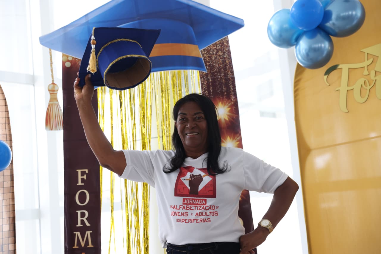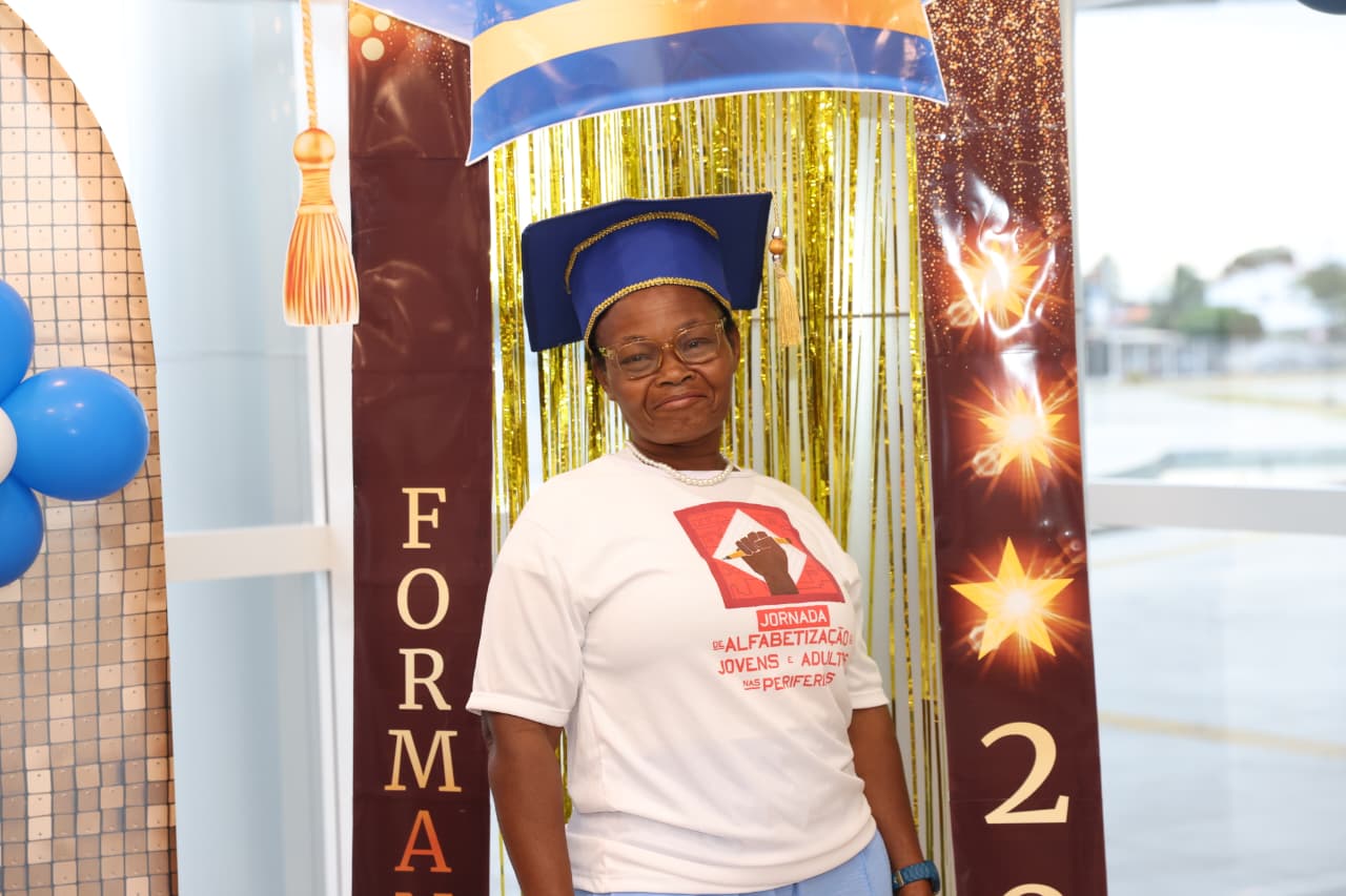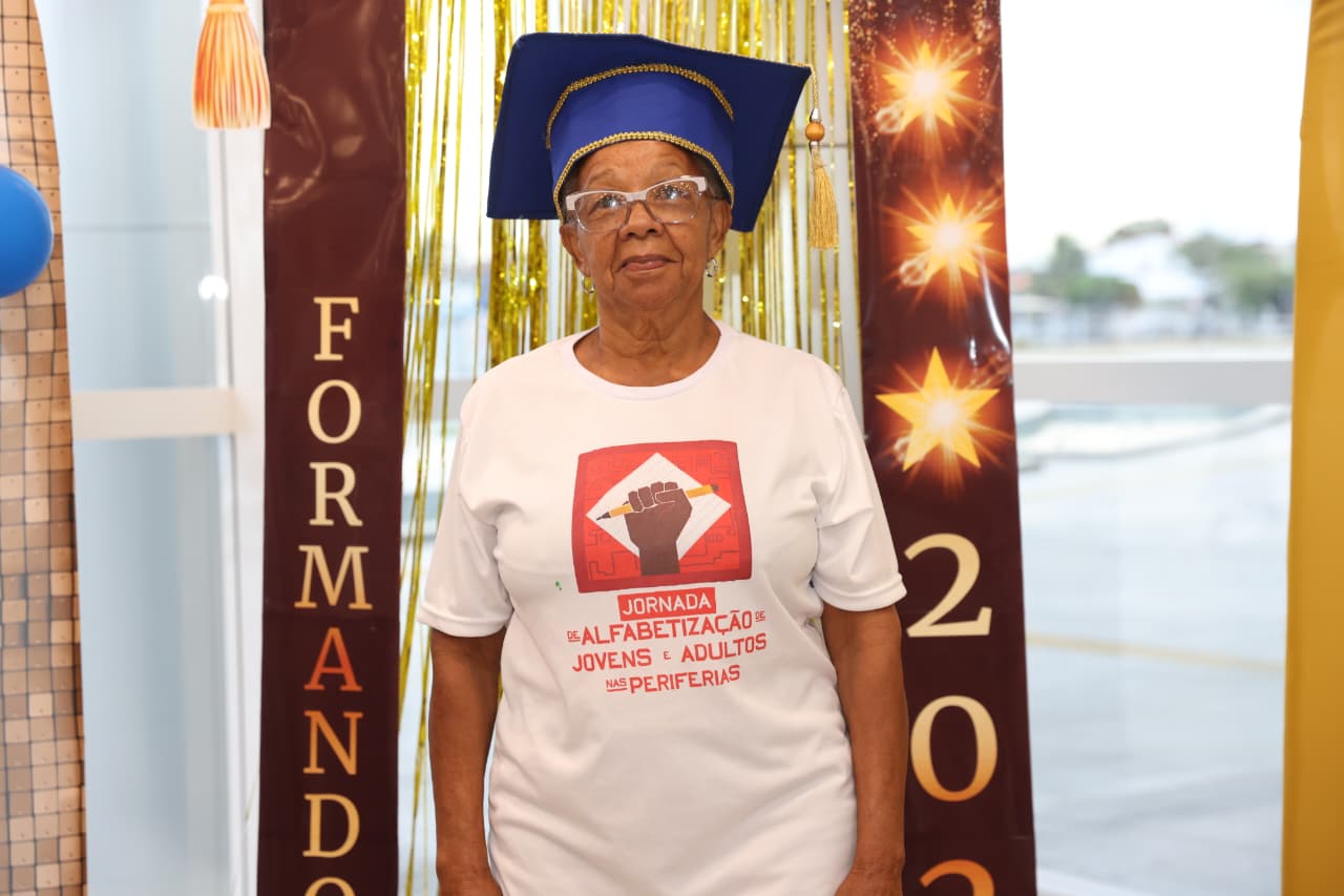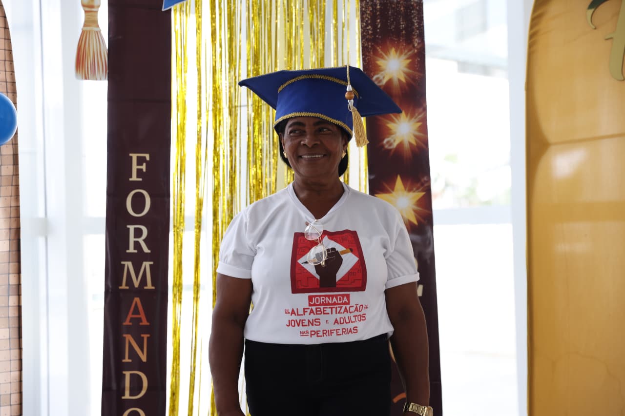 Entre as formandas, a feirense Anadir Lima de Jesus, de 46 anos, viveu a primeira experiência escolar após enfrentar, desde a infância, as limitações causadas pela paralisia infantil. “Nunca tinha estudado. Essa foi minha primeira sala de aula. Meu sonho era pegar a Bíblia e conseguir ler, e hoje isso já começa a acontecer”, disse, emocionada.