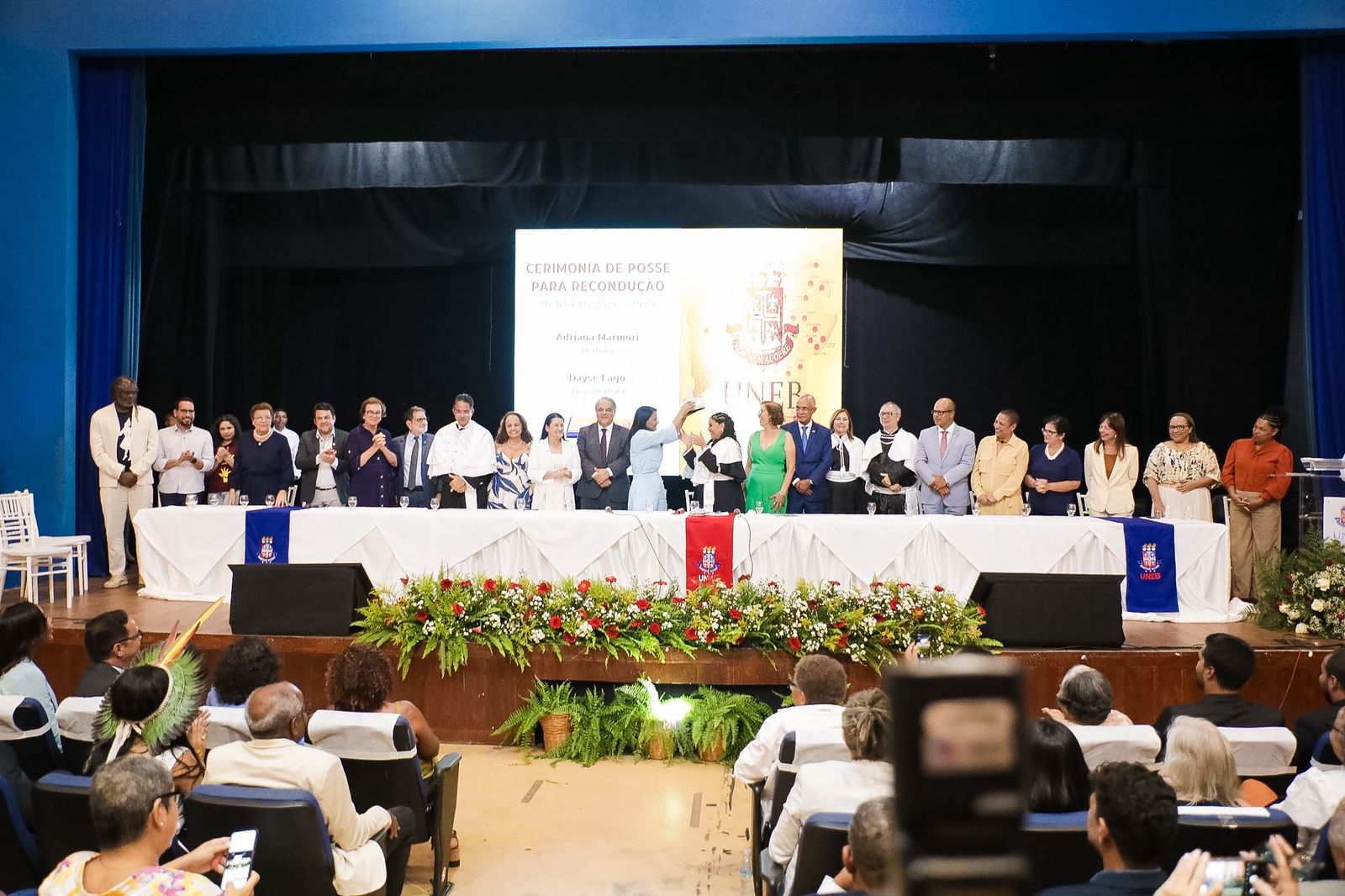 A Universidade do Estado da Bahia (UNEB) realizou, nesta terça-feira (13), a cerimônia de posse e recondução das professoras Adriana dos Santos Marmori Lima e Dayse Lago de Miranda aos cargos de reitora e vice-reitora, respectivamente, com mandato até 2029. Realizada no teatro da universidade, no Campus do Cabula, em Salvador, a solenidade conclui o processo após a reeleição e a formalização da assinatura do termo de posse, presidido pelo governador Jerônimo Rodrigues, no início do mês de janeiro.