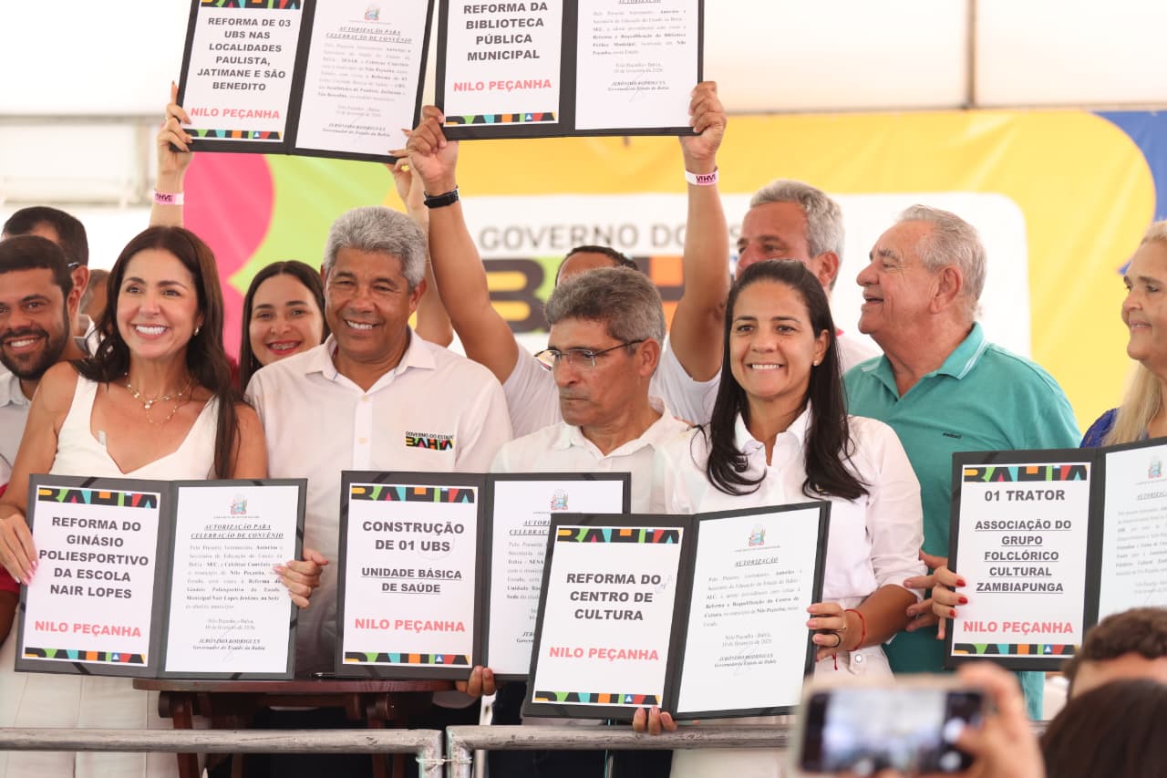O governador Jerônimo Rodrigues assinou autorizações para novos investimentos no município, incluindo a celebração de convênio para a construção de uma quadra esportiva na Escola Municipal Dinah Carrilho, no povoado de São Francisco; a reforma e ampliação da Escola Municipal José Carlos Aleluia, no distrito de São Benedito; a reforma e requalificação do Centro de Cultura de Nilo Peçanha; e a celebração de convênio para a reforma do Ginásio Poliesportivo da Escola Municipal Nair Lopes Jenkins, na sede do município.