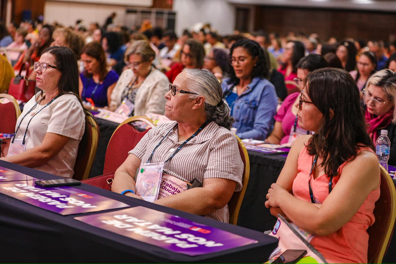 Representando o governador Jerônimo Rodrigues, a secretária estadual da Educação, Rowenna Brito, ressaltou o simbolismo de sediar o encontro na Bahia, especialmente no mês das mulheres. “Este espaço reafirma o nosso compromisso com a valorização das trabalhadoras da Educação e com a luta por igualdade”, pontuou. A gestora também destacou o protagonismo estudantil e a construção de uma escola inclusiva. “Queremos meninas ocupando todos os lugares de decisão”, disse.
