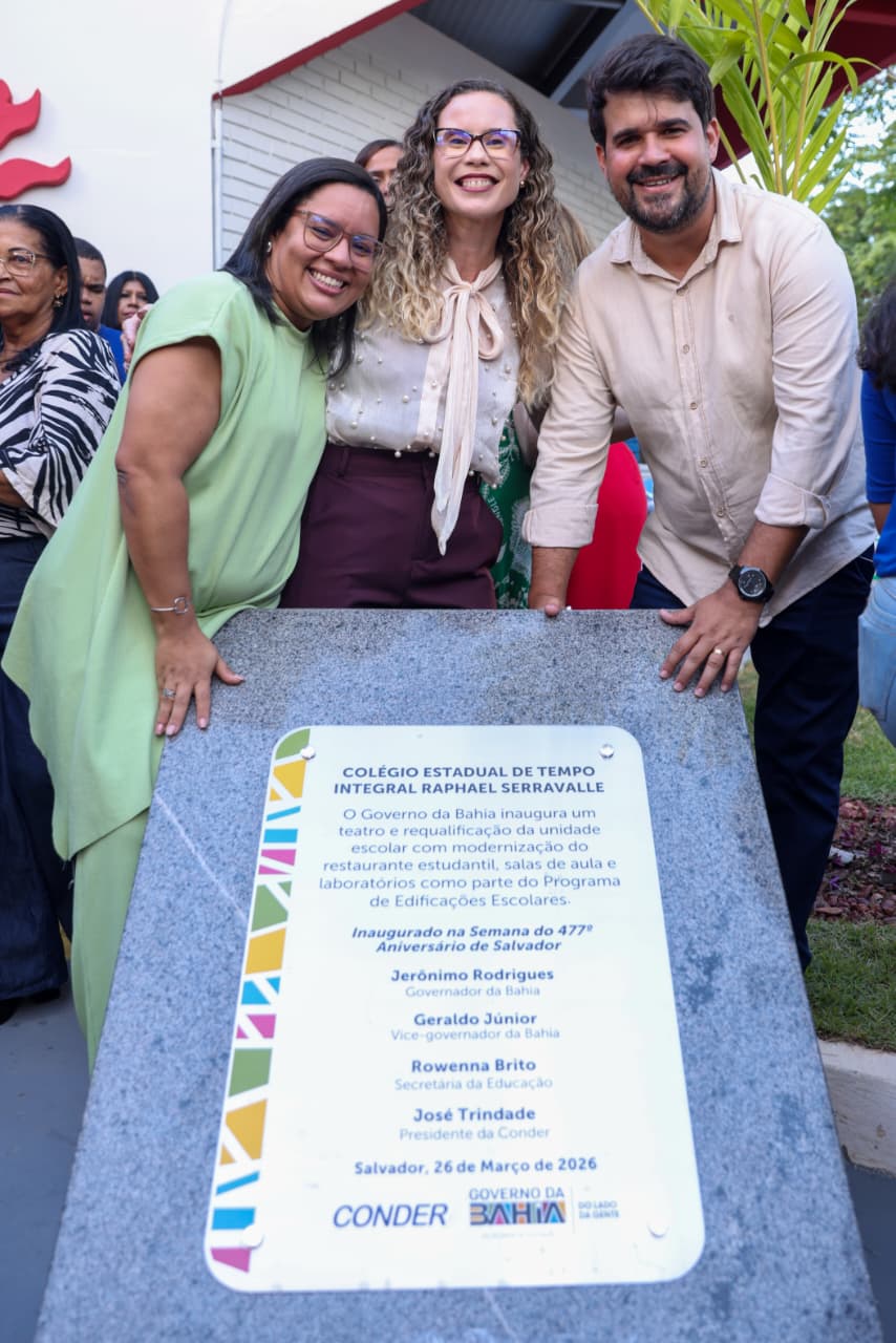 Em clima de festa, o Governo do Estado entregou, nesta quinta-feira (26), mais uma escola modernizada para celebrar a semana do aniversário de 477 anos de Salvador. O Colégio Estadual de Tempo Integral Raphael Serravalle, localizado no bairro da Pituba, foi inaugurado com a presença do governador Jerônimo Rodrigues e da chefe de gabinete da Secretaria da Educação da Bahia (SEC), Luciana Menezes.