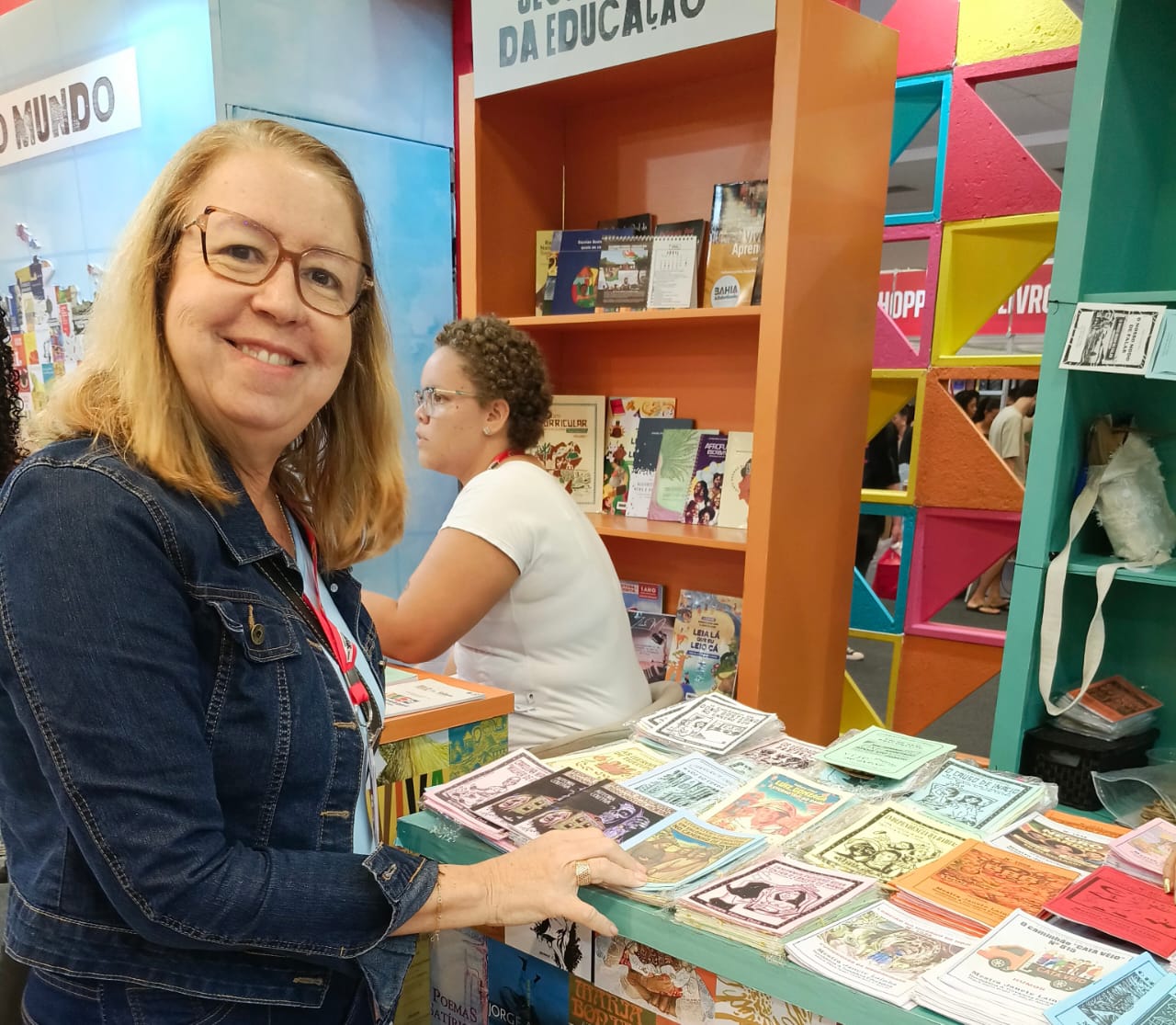 A coordenadora pedagógica Maria Helena Gomes Lobo, do Centro Estadual de Educação Profissional em Gestão de Negócios e Turismo Navarro de Brito, localizado no bairro da Lapinha, em Salvador, e a professora de inglês Eliane Santana protagonizam, neste domingo (19), um dos momentos mais simbólicos da Bienal do Livro da Bahia 2026, que acontece no Centro de Convenções Salvador. Como educadoras da rede estadual, elas integram o grupo de docentes que vivenciam o evento não apenas como visitantes, mas como agentes ativos na difusão da leitura, fortalecendo o tema desta edição: “Bahia: identidade que ecoa nos quatro cantos do mundo”.