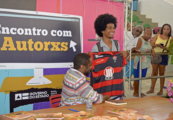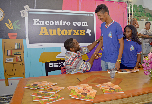 Entusiasmados com o tour cultural promovido hoje pela Egba, os estudantes compraram publicações e esperaram ansiosos pela fala do ator e escritor baiano Lázaro Ramos, que já lançou quatro livros, a maioria infantil. Com livros do astro nas mãos, Milena Nascimento (8º ano e 13 anos de idade) e Marlon dos Santos (9º ano e 15 anos de idade), estudantes da Escola Estadual Natália Vinhais, conseguiram o autógrafo do autor, que os cumprimentou com carinho.