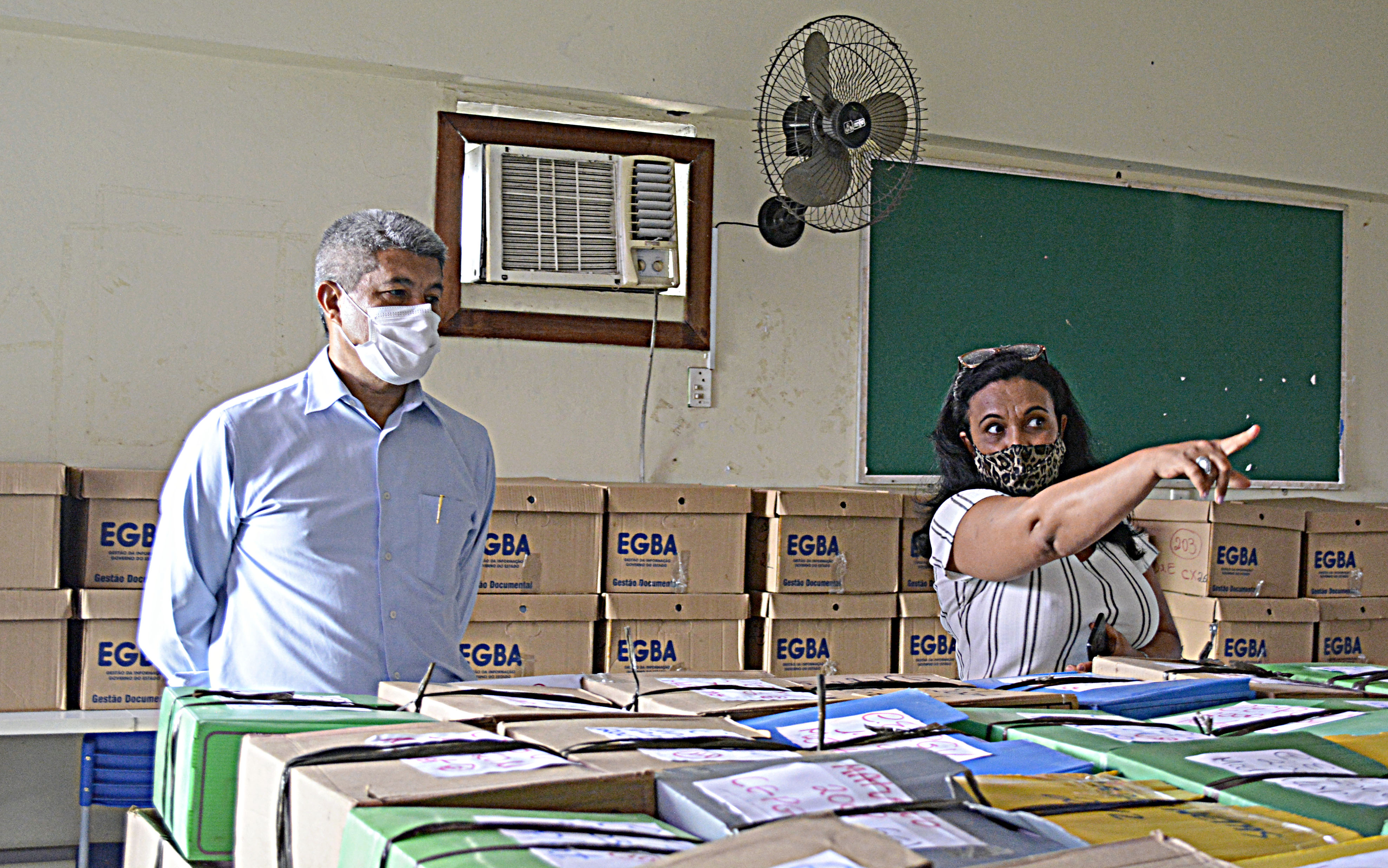 Em ato simbólico, com a visita ao acervo documental da Colégio Estadual Presidente Getúlio Vargas, a Empresa Gráfica da Bahia (Egba) e a Secretaria da Educação do Estado da Bahia (SEC) celebraram hoje o início do trabalho que vai resultar no Inventário, Organização, Digitalização e Guarda dos protocolos de alunos e servidores de todas as unidades escolares estaduais baianas, em funcionamento ou extintas. As 54 primeiras caixas desse extenso contrato foram entregues à empresa, na presença do secretário da Educação, Jerônimo Rodrigues Souza, e do diretor-geral em Exercício da Egba, Marcos Emílio Barbosa.