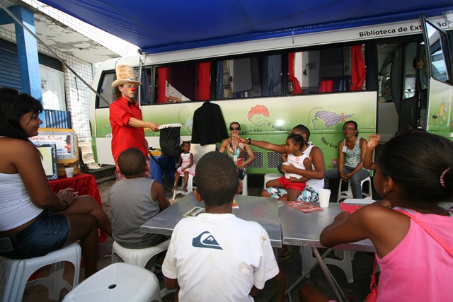 Neste domingo dia (26/07), no Cine Teatro Sola Boa Vista (Engenho Velho de Brotas), das 10h às 17h, com ações gratuitas. Com a proposta de unir leitura e arte em diversos pontos da cidade, a Biblioteca de Extensão (Bibex), unidade da Fundação Pedro Calmon / Secretaria de Cultura do Estado da Bahia, através da Biblioteca Móvel aporta, no próximo domingo dia (26/07), no Cine Teatro Sola Boa Vista (Engenho Velho de Brotas), das 10h às 17h. As ações gratuitas da Bibex incluem histórias com fantoches, oficinas lúdicas, jogos interativos e apresentações culturais, além dos tradicionais serviços oferecidos à população de consulta de jornais, livros e periódicos abertos à comunidade.