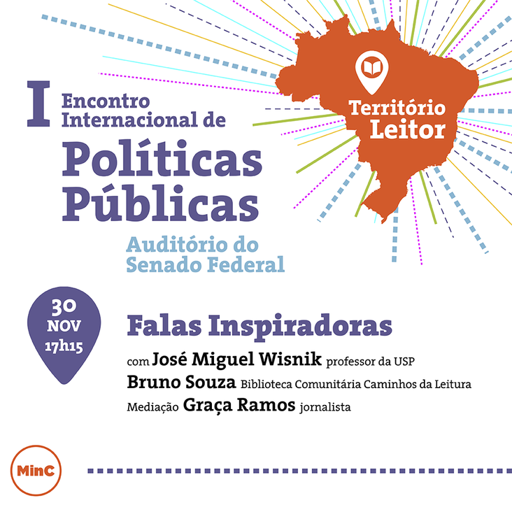 card1 De 30 de novembro a 4 de dezembro, a Diretoria de Livro, Leitura, Literatura e Bibliotecas do Ministério da Cultura (DLLLB/MinC) realiza, em Brasília, quatro eventos que englobam debates, reflexões e exposições de ações relacionadas aos setor do livro e da leitura e ao andamento de políticas públicas no Brasil e no exterior sobre o tema. O primeiro deles é o I Encontro Internacional de Políticas Públicas – Território Leitor, de 30 de novembro a 2 de dezembro, no auditório do Senado Federal, com programação aberta ao público. A coordenadora do Sistema Estadual de Bibliotecas Públicas (SEBP), Maria Cristina Santos, participa do Encontro representando o estado. Agentes políticos, escritores e gestores de planos de livro e leitura compartilharão suas experiências com os presentes. Serão apresentados casos brasileiros e de países como Colômbia, Chile, Finlândia e Uruguai de implantação de planos nacionais de leitura e práticas inovadoras em bibliotecas.  De acordo com o diretor da DLLLB, Volnei Canônica, o encontro nasce com o intuito de refletir sobre os diferentes caminhos percorridos pelos atores que pensam a promoção do livro e da leitura. "O Território Leitor quer viabilizar um Brasil que se conecta com cada ação de promoção da leitura nos diferentes estados, municípios e bairros. É um Brasil conectado de Norte a Sul, de Leste a Oeste e com o mundo. Somente juntos poderemos construir um Território Leitor", afirma.  Em paralelo, também será realizado o I Encontro do Plano Nacional do Livro e Leitura (PNLL), com foco no fortalecimento e na qualificação de políticas públicas do livro, leitura, literatura e bibliotecas. Estão previstas as apresentações de planos nacionais de leitura de países da América Latina, que, em diálogo com os planos estaduais e municipais das cinco regiões brasileiras, possibilitarão uma importante reflexão sobre o contexto atual de implantação e aprimoramento dos planos no Brasil. O evento será realizado no Edifício Parque Cidade Corporate, na região central de Brasília, no dia 3 de dezembro.  Já de 30 de novembro a 4 de dezembro, o XX Encontro do Sistema Nacional de Bibliotecas Públicas (SNBP) irá trabalhar na formação e no fortalecimento dos Sistemas Estaduais de Bibliotecas Públicas. O objetivo é elaborar um diagnóstico da situação atual e um planejamento de ações que possam ampliar o campo de atuação dos sistemas, de forma a fortalecer o trabalho colaborativo com as bibliotecas municipais e comunitárias. A 16ª edição do Encontro Nacional do Programa Nacional de Incentivo à Leitura (Proler) marca uma nova fase do programa no MinC, sob a gestão da DLLLB. O evento reunirá os Comitês do Proler de diferentes lugares do Brasil com a intenção de construir novas diretrizes para o próximo biênio, além de estratégias para se avançar na formação de mediadores de leitura. card2