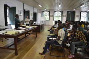 Dentre eles estava Deuinalom Fernando Cambanco, de 23 anos, estudante do 5º semestre, que pela primeira vez visitava o Arquivo. “Achei muito interessante, pois aqui podemos encontrar muitos documentos históricos da Bahia e como já estou preparando trabalho de conclusão sobre São Francisco do Conde, onde agora resido, sei que aqui será uma fonte muito rica em termos de pesquisa. Voltarei em breve para estudar mais profundamente”, frisou o estudante que é um dos muitos africanos que estudam na Universidade. A Unilab tem como missão contribuir para a integração entre o Brasil e os demais países membros da Comunidade dos Países de Língua Portuguesa (CPLP), especialmente os países africanos.
