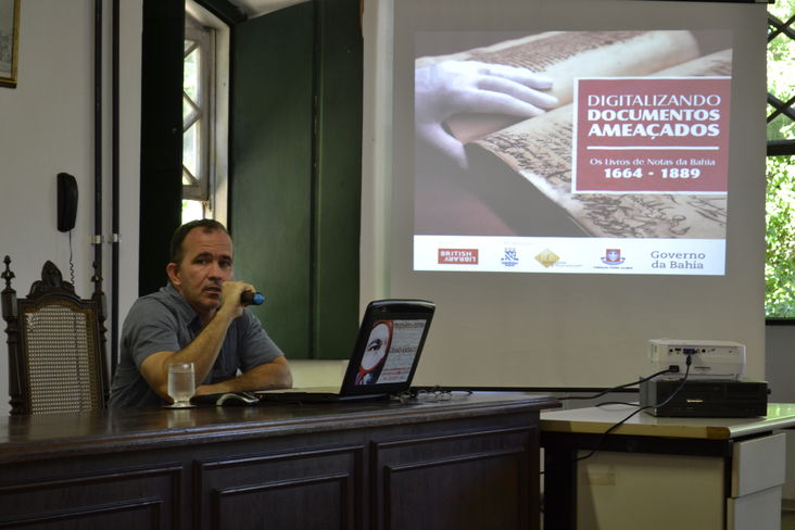 O Arquivo Público do Estado da Bahia (APEB) – unidade vinculada à Fundação Pedro Calmon/ Secretaria de Cultura do Estado, realizou, na quinta-feira (07/04), a palestra “Digitalizando documentos ameaçados: os livros de notas da Bahia 1664 – 1889”, com objetivo de publicizar o andamento do projeto homônimo de digitalização de 841 livros de notas que integram o acervo histórico da unidade.