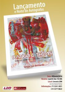 O advogado, professor e ativista do movimento negro, Sérgio São Bernardo, lança no próximo dia 9 de maio, em Salvador, o livro “Xangô e Thémis - Estudos sobre filosofia, direito e racismo”. A publicação é fruto de sua dissertação de mestrado em direito e da atuação com os temas nos últimos 20 anos. A partir da mitologia grega e africana, ele faz abordagens associadas às questões identitárias, ao racismo institucional e ao que chama de “pretensão dialógica e promotora de acontecimentos ético-jurídicos emancipatórios na vida política brasileira”. O lançamento acontece a partir das 18h30, na Livraria LDM (Cine Glauber Rocha), localizada na Praça Castro Alves.
