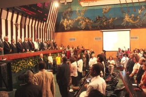 Na manhã desta quinta (12), o plenário da Assembleia Legislativa da Bahia recebeu estudantes, professores, representantes de instituições de pesquisa, dirigentes estaduais e autoridades políticas para celebrar os 70 anos da Universidade Federal da Bahia (Ufba). Proposta pelo deputado estadual Marcelino Galo (PT), a Sessão foi aberta pela Filarmônica da UFBA, com regência do maestro Celso José Benedito. O secretário de Cultura do estado, Jorge Portugal, integrou a mesa da cerimônia, junto ao reitor da Universidade, João Carlos Salles, reitores anteriores, como Roberto Santos, Naomar Almeida e Dora Leal Rosa e autoridades. O diretor geral da Fundação Pedro Calmon, Zulu Araújo, esteve presente à Sessão.